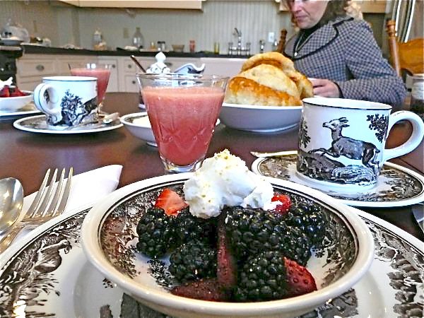 I headed over, trusty yogurt in hand, and was really looking forward to some girl friend time as both of us have been so busy lately. Her cousin, Janet, was joining us. The door opened, and the smells of a hearty breakfast danced in the air, excited to get the door closed to keep out the icy breeze. Leslie greeted in her gold and green striped apron, and the stage was set. I flowed into the kitchen seamlessly.