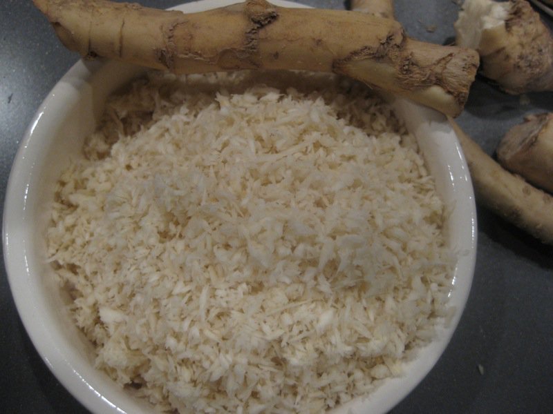 - 1/3 cup drained bottled horseradish OR freshly grated horseradish