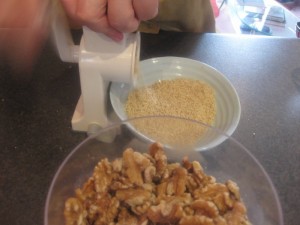 - Grind walnuts and preheat the oven to 410º F