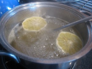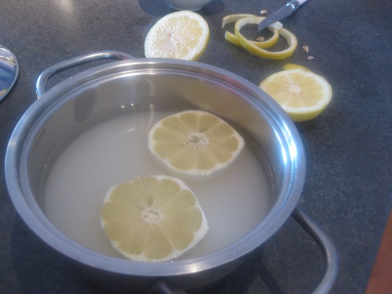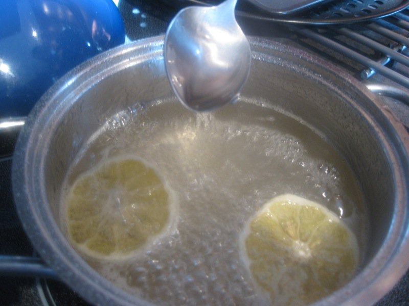 - Place the water, lemon and sugar into a small pan and bring to a low boil