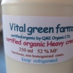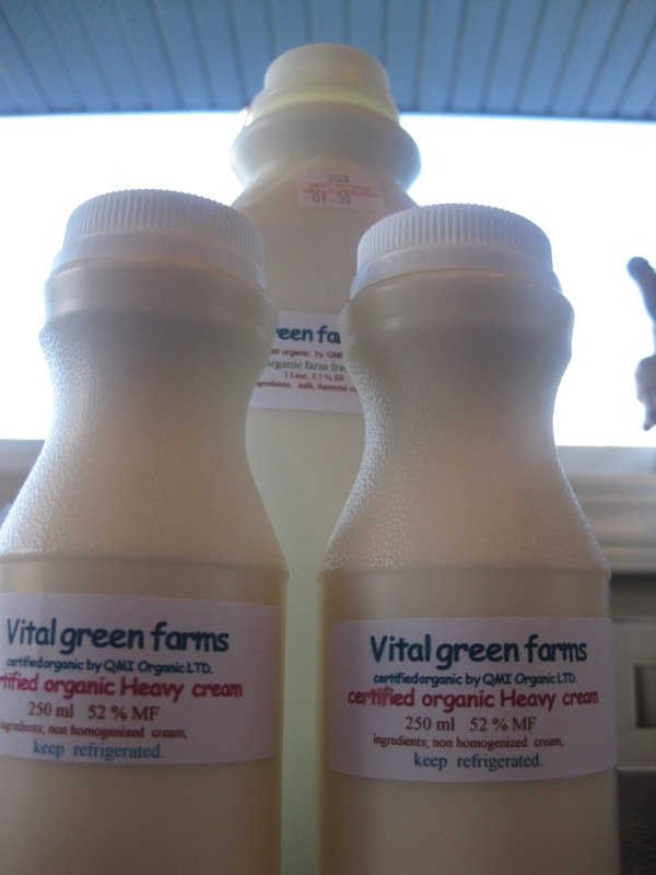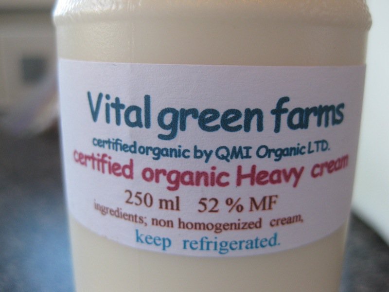 So, that’s what I did. I drove my little car right over to Planet Organic and investigated. Found it! Vital Green Farms is from Picture Butte, and produces this cream reminiscent of that top layer straight from the cow. I have not had cream like this since I was very young and living on a farm as a newly wed with my first child. My family doctor, Gene Boehme, had a small farm just 2 kilometers out of Lethbridge. We rented a little house on it, and reaped many of the farm benefits and still basically lived just on the edge of the city. The fresh milk and cream was one of them. I used to make the most spectacular ice creams with that cream in those days.