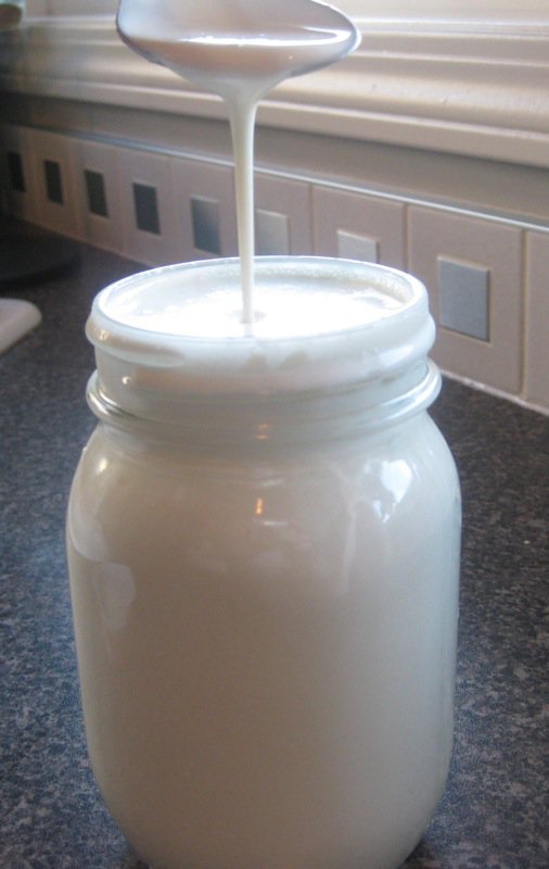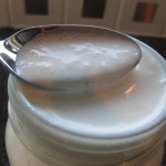 This is “the” créme fraîche recipe. The real one. This is what all of the fuss is about. This is thick, unctuous, creamy, silken and sumptuous after 48 hours. How can it be refreshing when it is so sinfully heavy and almost cloying? It is. It pairs perfectly with the decadent Chocolate Brownie, here. Below, it is 24 hours old. The texture is lustrous, but not yet set.
