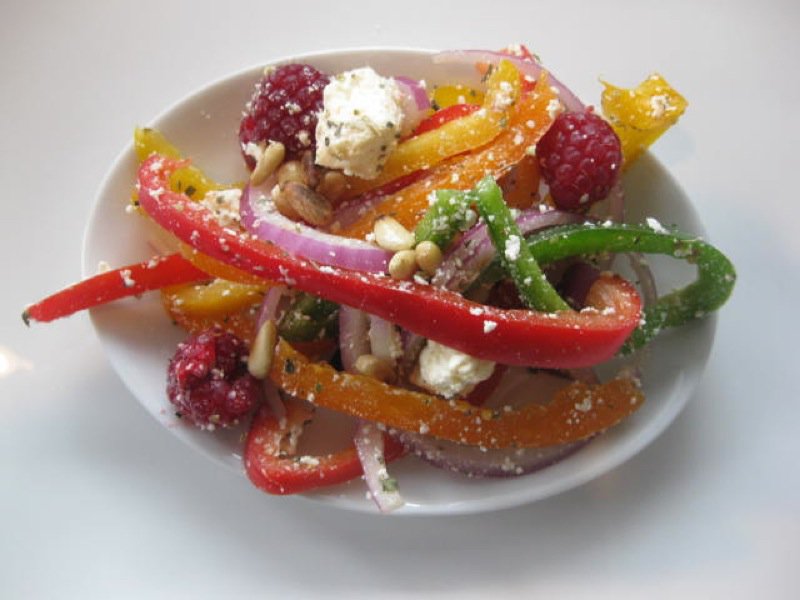 Sweet Bell Pepper Salad with Feta Cheese and Raspberry Vinaigrette