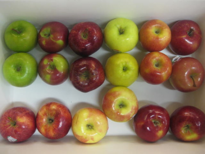 Top, left to right: Granny Smith. McIntosh, Red Delicious, Golden Delicious, Sonya, Fiji
