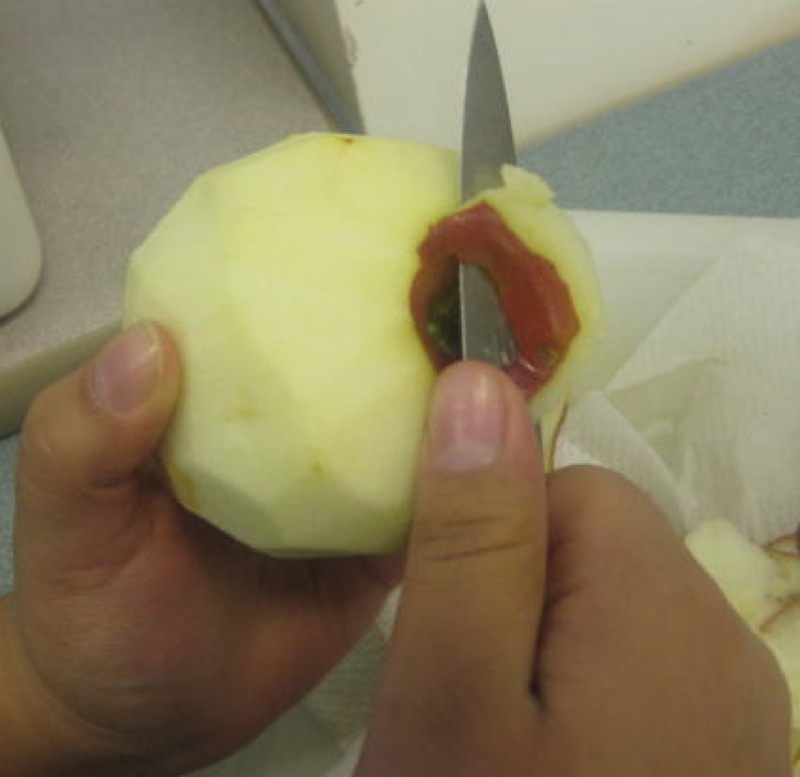 - Apples were washed, cored, and sliced.