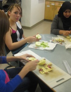 It amazes me how quiet and focused students are when using a knife. They understand it is dangerous. They don’t want to hurt themselves, and they do enjoy learning knife skills. Everyone really focuses and helps one another.