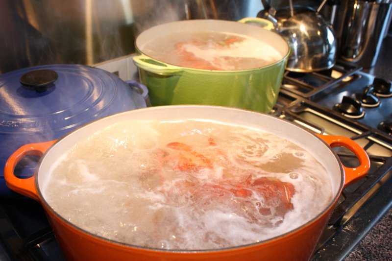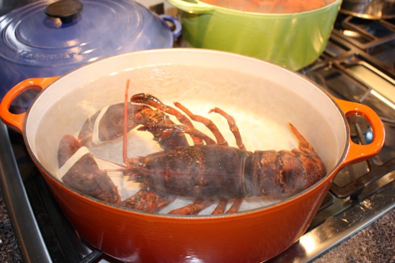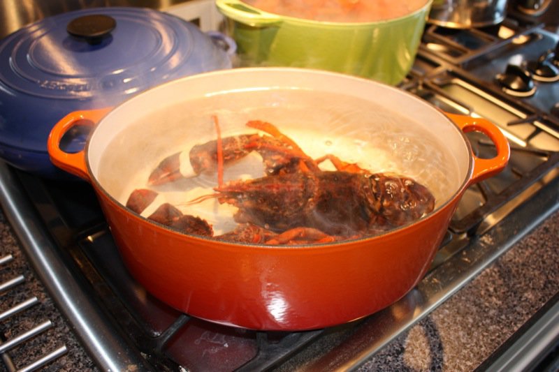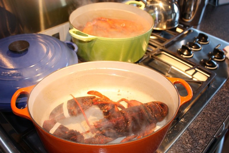 And those three Creuset enamelled pans in the boiling lobster pic – what a trio of beauties!