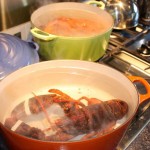 Thanks for the tip… that is why I only cooked one lobster in each pot – my huge soup pot was not available. I was able to cover the lobster completely, but yes… I see what you are saying, and that makes a lot of sense. I was reading about lobsters, and the jumbo ones will, apparently, feed and entire family. Each of these was just over 4 ounces of meat. I would have worked up so much energy eating them, that I would have been starving once finished with this amount. And the tails were small. That really surprised me. I expected them to be more ample. Do you know where, what time of year, or what kind I could find to have a much bigger lobster? At over a kilo each, I thought these were considered a fair size. But, I think not now that I see how little I got from each. If you make these, I want to hear every detail… photograph it… I really regret not getting a photo of the insides once bitten into.