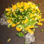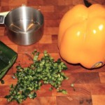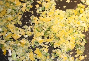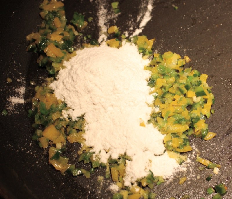 - Melt butter in small sautépan over medium heat; add yellow pepper, Poblano pepper, and scallion