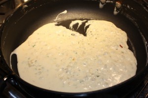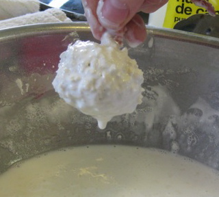 Into the refrigerator this went while I made the cream binding. I found it very much like making Spanish Croquettes. The Spanish recipe has more butter and flour and less cream, but the idea is the same. And, as I kept cooking to reduce the cream, the result appeared very similar.