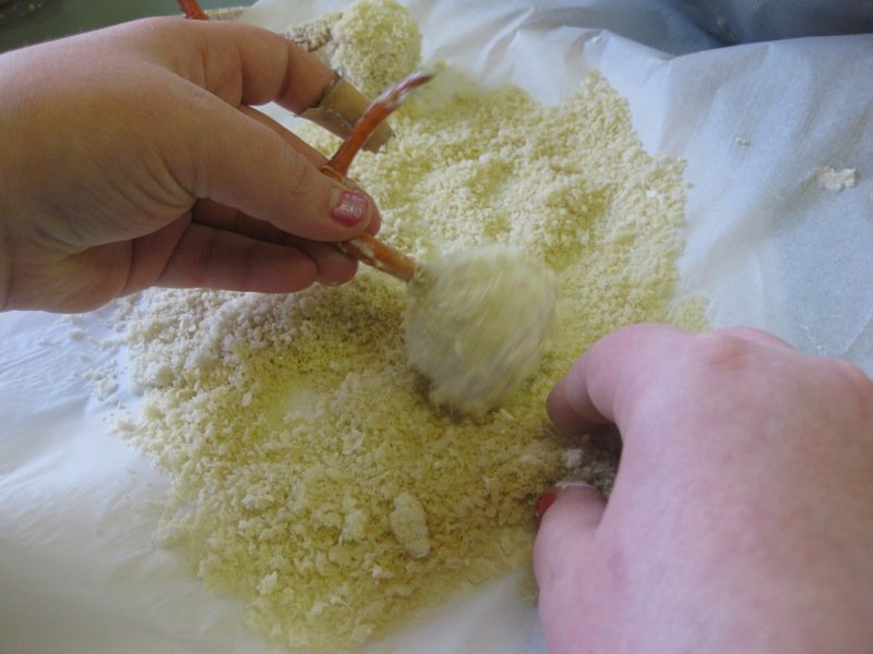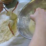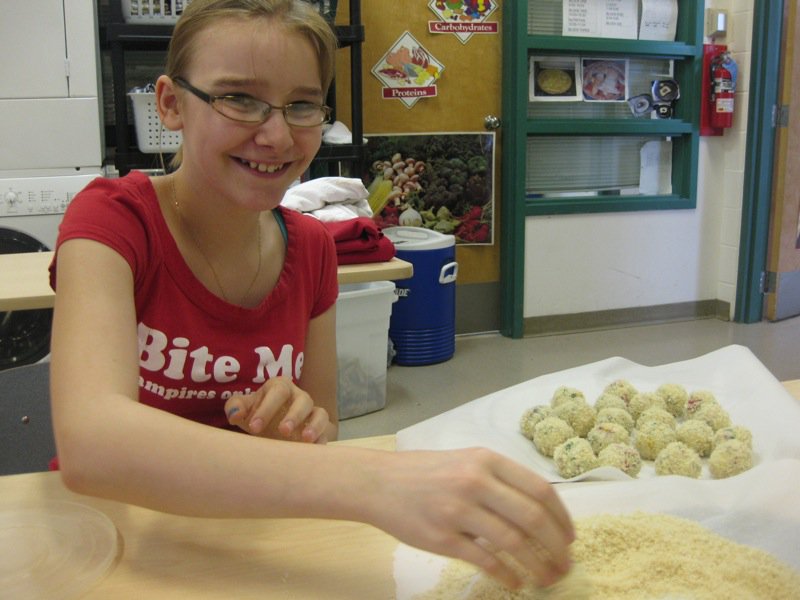 Here is Bailey doing the extra balls that I didn’t have legs, or “fingers” for. It is always so much more fun to cook with someone. I love the chatting and the storytelling that accompanies the process.
