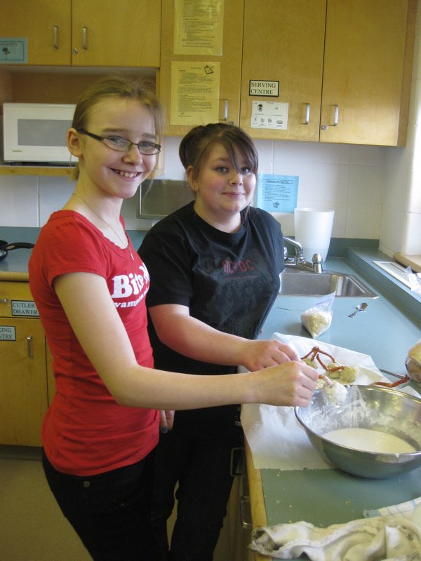 I got out my lobster to get started after class with my Catering Club. Most of my students had never seen a lobster, and were completely enamoured with the legs and the idea of what I was doing. Class ended, the Catering Club students came, and we got started (after scrubbing hands with aprons on, and hair back).