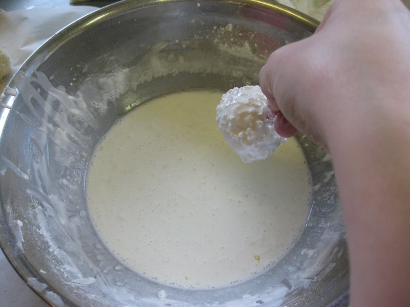 - Here, Adjey says fry… I say make the tempura, dip each ball into the tempura, then into the panko crumbs and fry until golden brown; about 3-4 minutes
