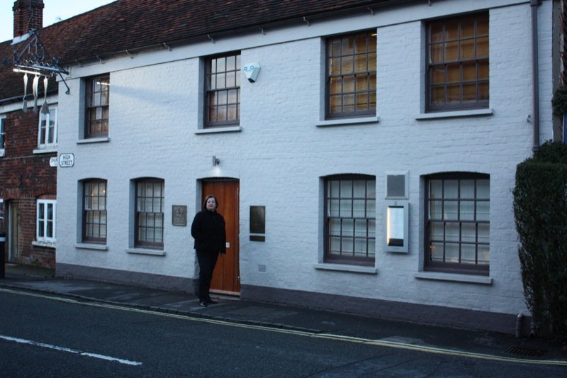 We took the underground to Paddington Station from our hotel in London and transferred to the train for Maidenhead which was a short 25 minutes away. Come with me from the train to The Fat Duck! Our taxi took us down the hill around the corner and through a lovely green residential area to a very quiet road, then stopped in front of a plain white building with a simple brown door and said, “This is it”. We looked at each other and I stepped out of the car looking for evidence while Vanja paid. Then I looked up, and smiled.