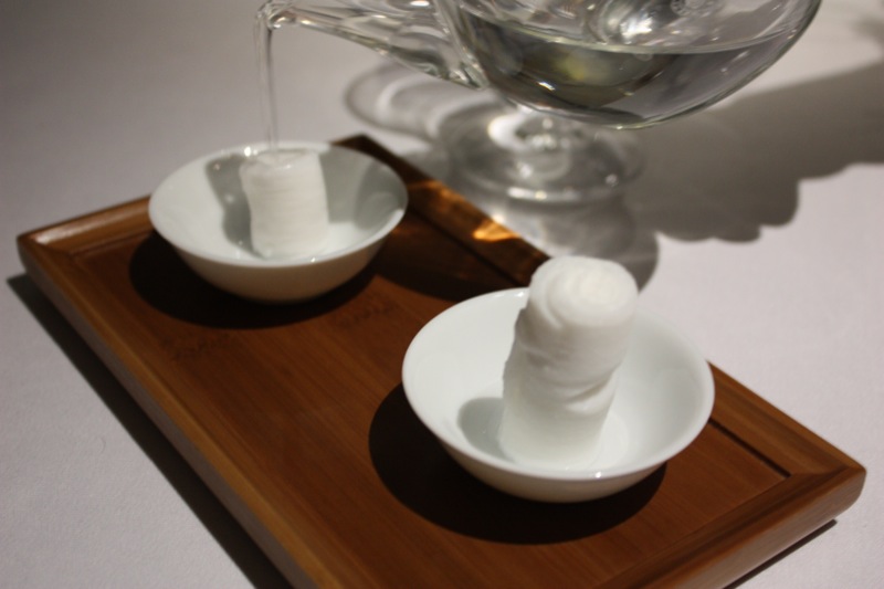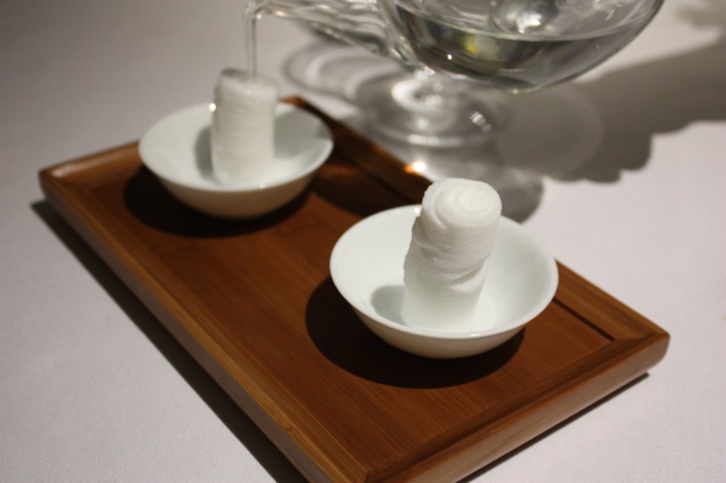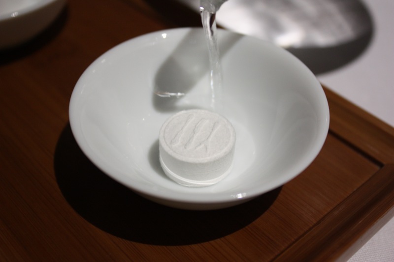 I had requested a trip to the kitchen and was told that would be welcome and probably best at the end of our meal. A server brought us these tablets and said, “A little something for your hands before you visit the kitchen.” Everything was scripted. Comfortably scripted, but purposefully so. Tablets? I was confused. Startled, momentarily. What was I to do with this? Then the water was poured over each and they magically grew just like Alice in Wonderland.