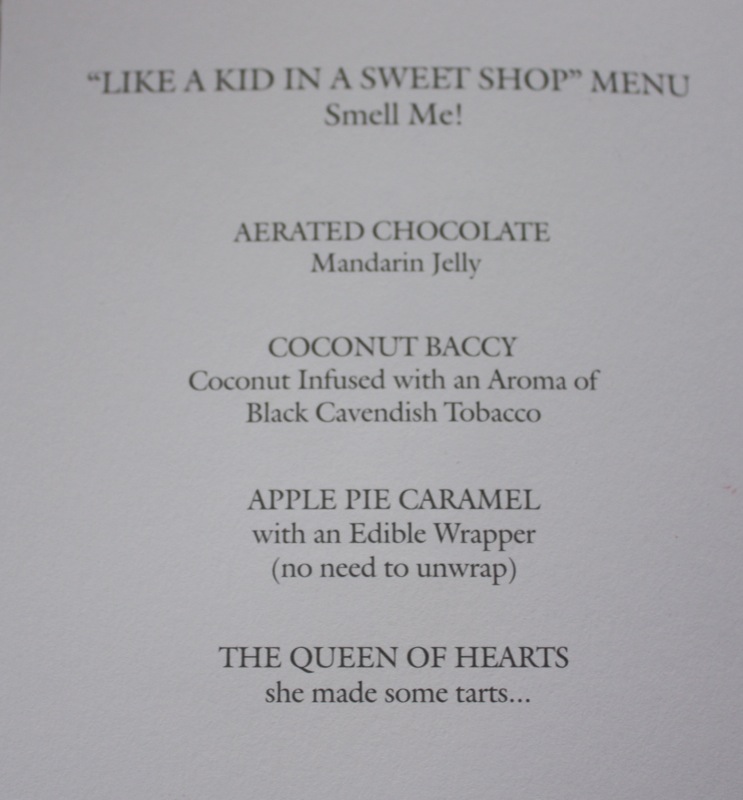 Two and a half hours had passed at the blink of an eye. We could not believe that we needed to catch our train back to London and that we still had the dessert courses before us. I have never spent that amount of time sitting at a table without being painfully aware of the time. This really was a Wonderland. Time stands still and flies at the very same time at The Fat Duck.