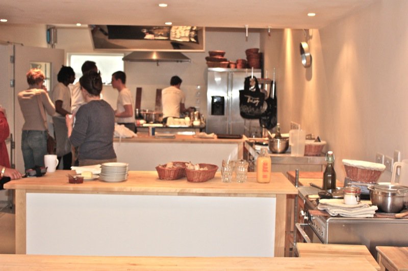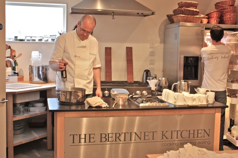 I grinned at the little gal with her papa’s big horn-rimmed glasses upside down on her tiny cherubic face. I drank my beautiful frothy cup of morning and took it all in. But, I had a mission today. My heart was racing again. It was 9:50, and time for me to head to The Bertinet Kitchen Cookery School. I left my chnage on the table. Nodded at the young chap who is not etched in this memory, and was out back on that now all too familiar path again. But, this time, I knew where I was going.