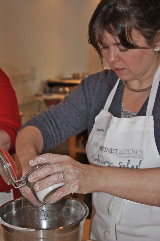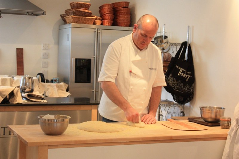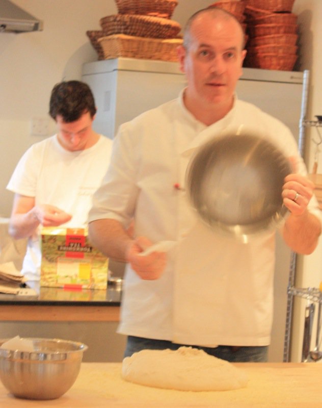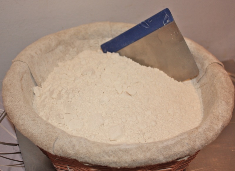The flour is so important. It must rest after it is milled. This surprised me so much as I had always believed that most nutrients escaped after the first 72 hours after grinding and the flour must be used quickly. I usually grind my wheat just before making my bread. Richard says the flour has to rest. He sells his flour from his website and it is shipped free to anywhere in the UK. It is a buff colour with a hint of yellow. It is a very soft and fine flour compared to the all purpose white flour I buy and work with here. He stressed that bread flour has to have 12% protein, yet I cannot find that kind of information on any of the bags in the grocery stores and must investigate how to find such a flour, further.