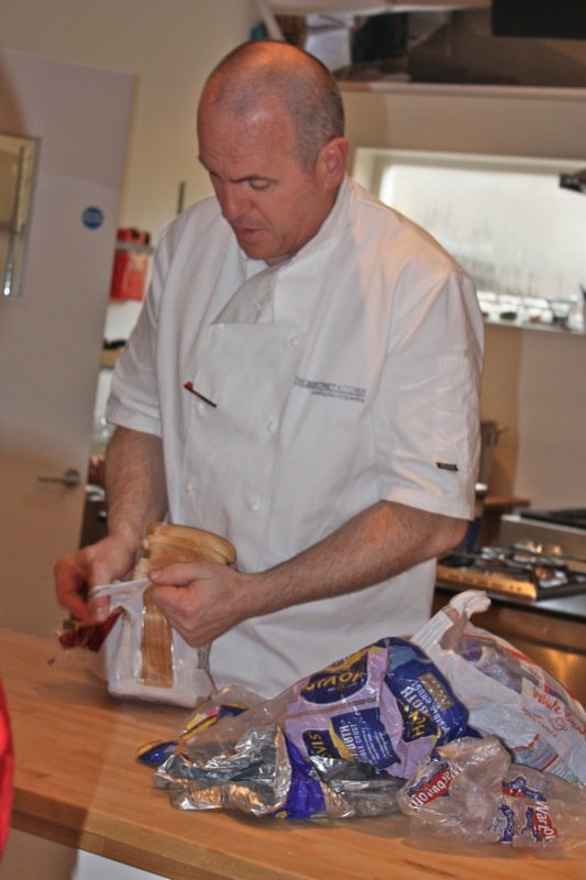 Everyone confessed to buying this kind of bread. White and soft. The bags were passed around. Read the ingredients. Read them. Come on, read them! All of them. It was horrifying. “If you cannot pronounce what is in it, don’t buy it.” Richard espoused. And was vehement about this product betraying all in the food markets all over the world today. “This is not bread! Call it a bread substitute, or a bread replacement, but do not call it bread. It is not bread.” He painted a picture of the British vacationing in France for a week and every day they go to the baker and they feel the bread and it cracks and crunches just like they want and they buy it fresh every day and eat it and savour it. The, go back home to Britain and forget about their relationship with real bread.