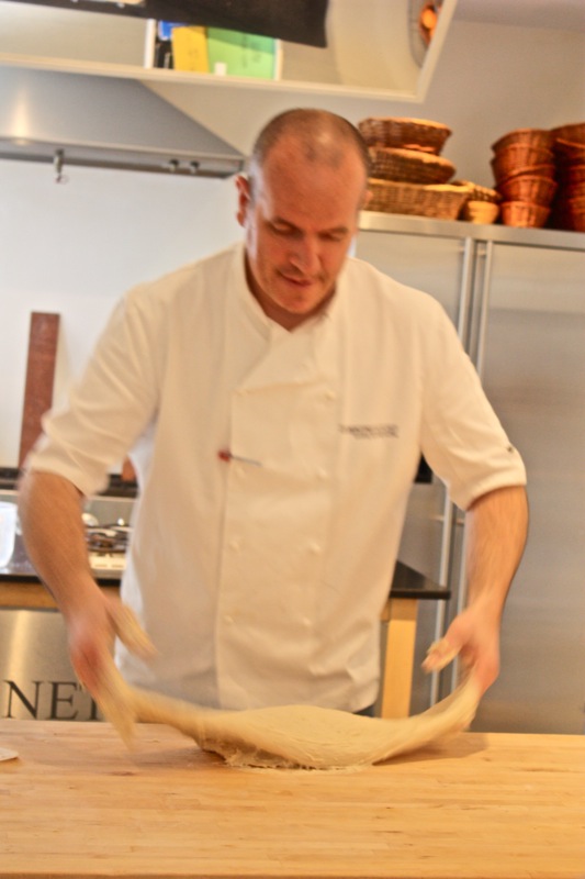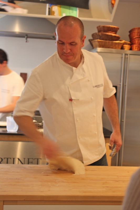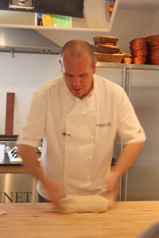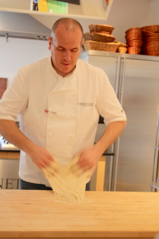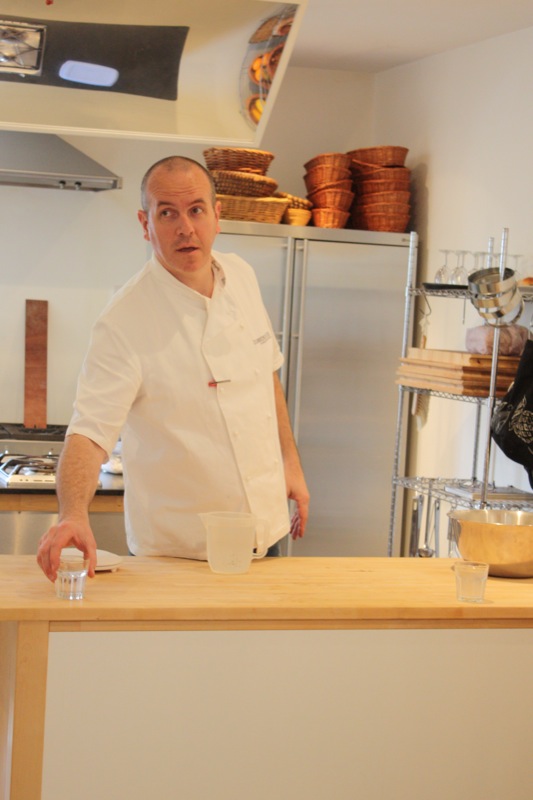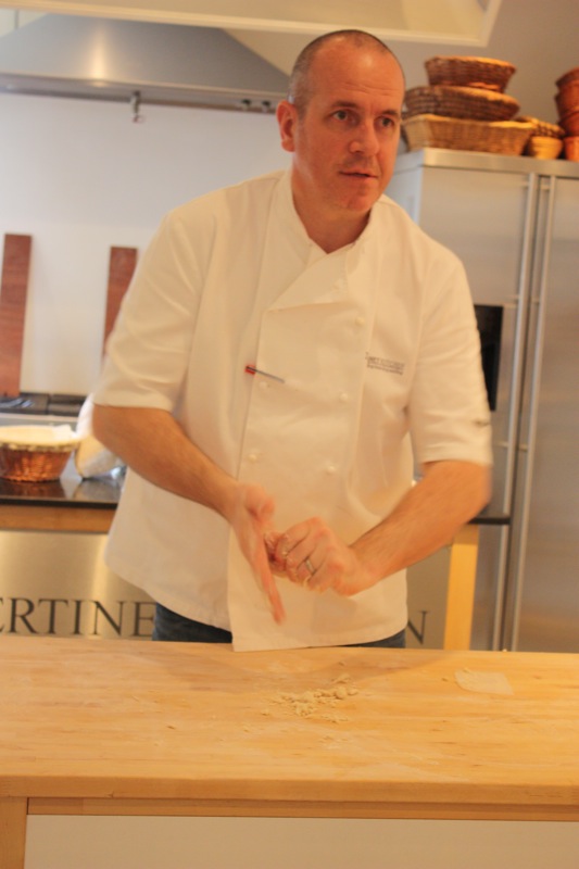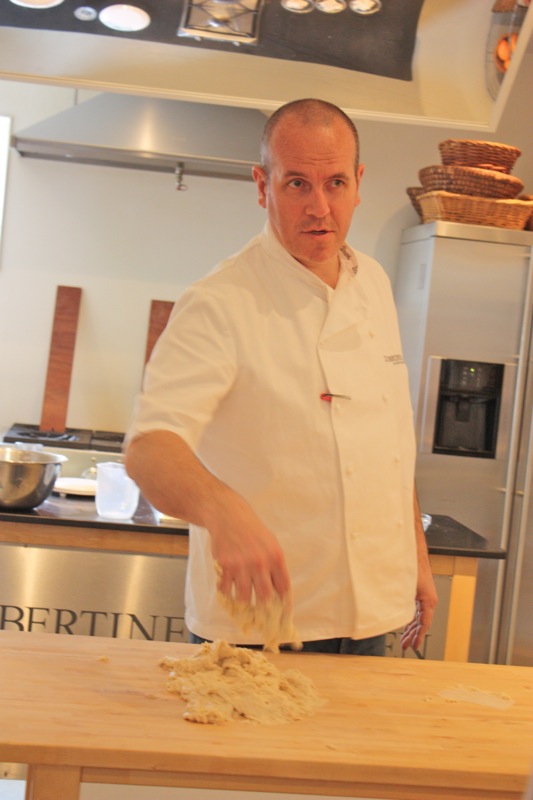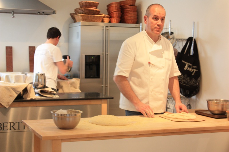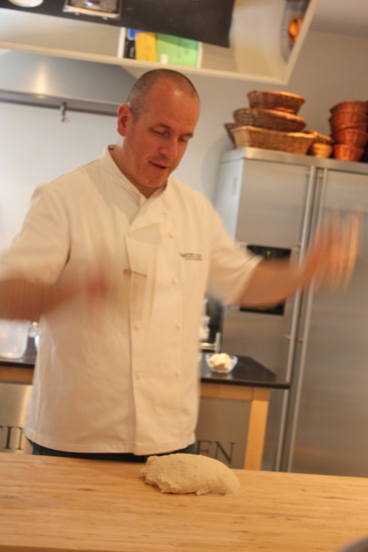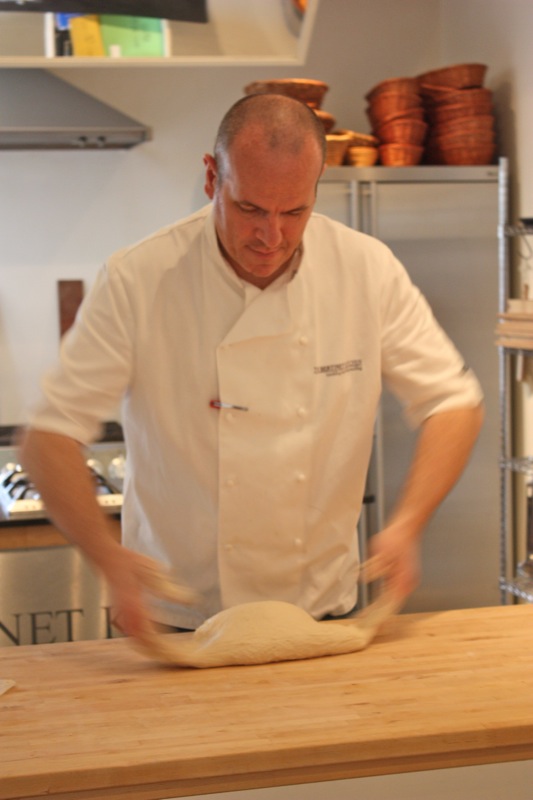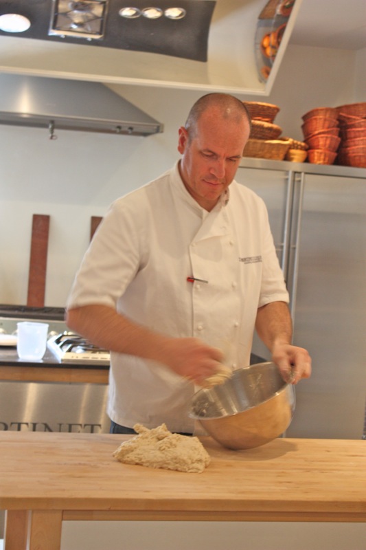It is 9:50, the class starts at 10. and I am filled with anticipation as I pull open the light old door and am immediately inside of the cooking room. “Hello! Welcome! Come in!” boomed a warm voice as my eyes adjusted to the light. Immediately, the tall man came toward me and took my pack and said, “Come. come upstairs and let’s take off your coat. Make yourself at home.” I followed through the room, past warm smiles, up some stairs to what looked like a store and around the corner to a coat rack. We were chatting as he led me and asked me where I was from. I told him I had come all the way from Canada just for him, and it was true. Honestly, I was having trouble visiting. I was still in awe of the fact that Richard Bertinet had grabbed my bag from my shoulders and taken it up the stairs for me. How many times have I watched his bread baking video from Dough? I was still actually wondering if this was really him.