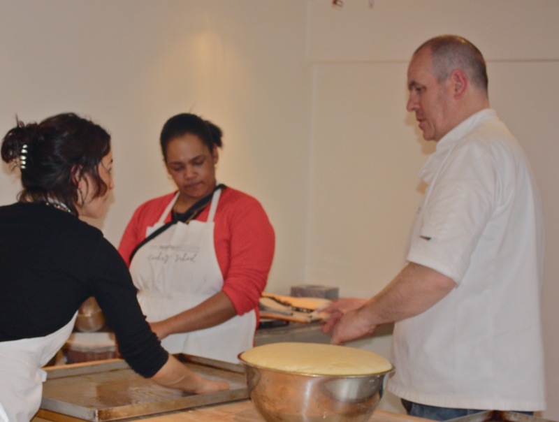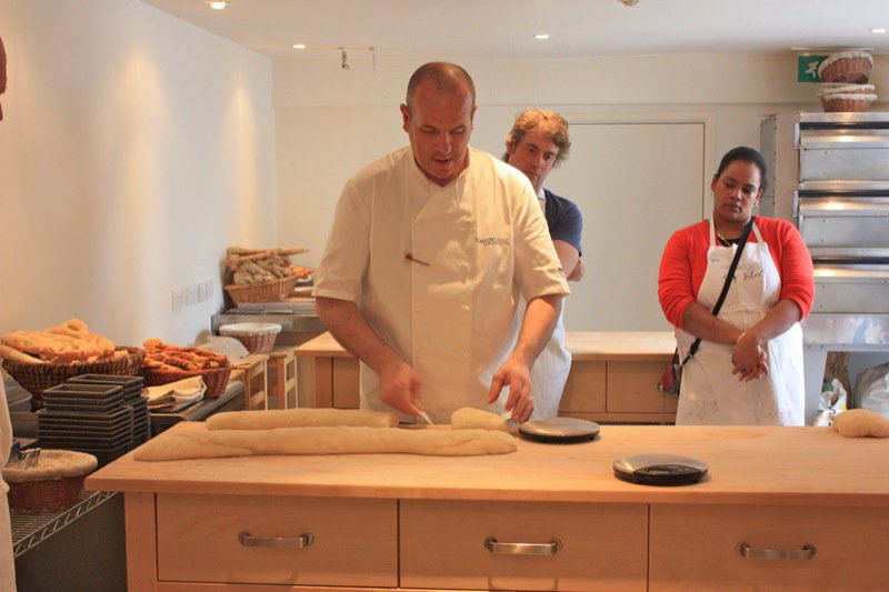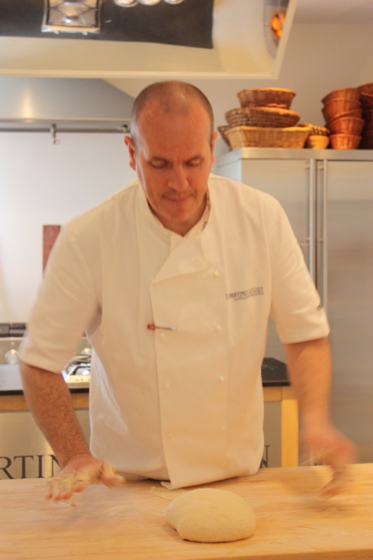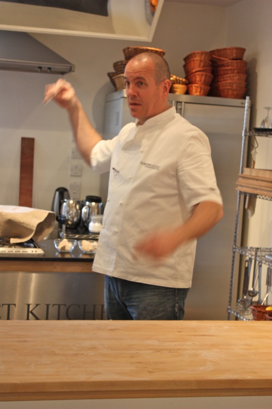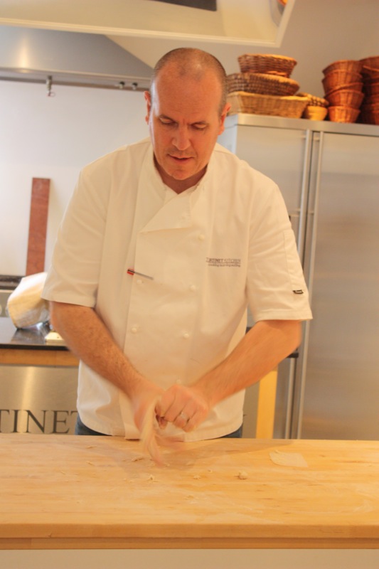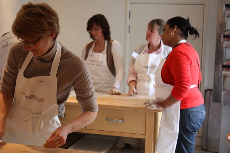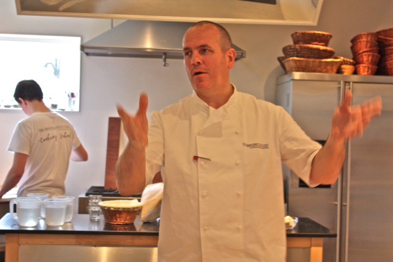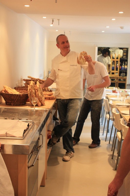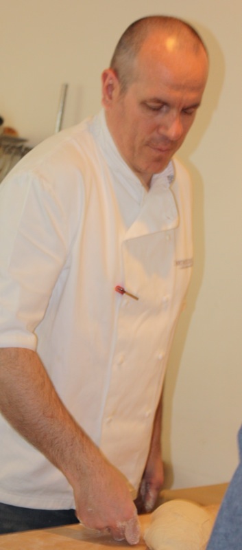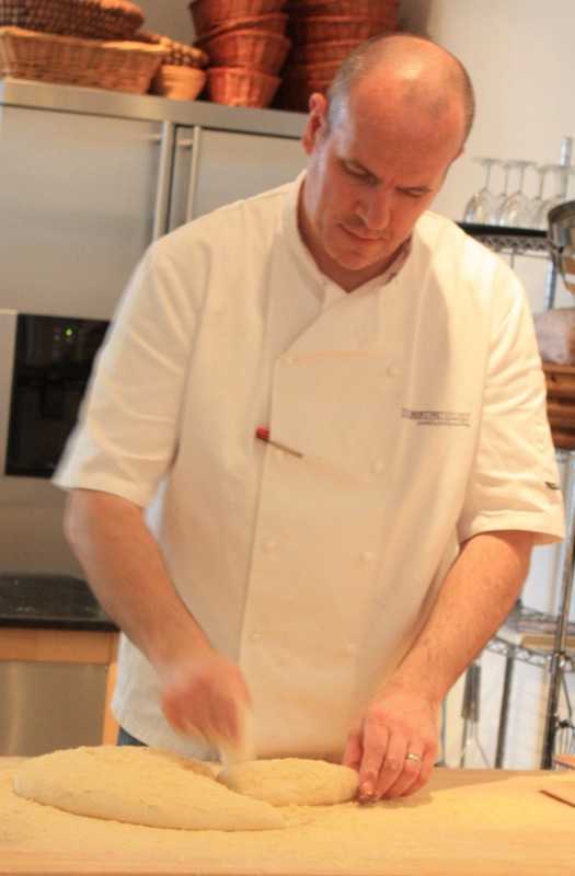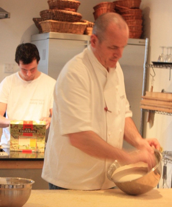 It is 9:50, the class starts at 10. and I am filled with anticipation as I pull open the light old door and am immediately inside of the cooking room. “Hello! Welcome! Come in!” boomed a warm voice as my eyes adjusted to the light. Immediately, the tall man came toward me and took my pack and said, “Come. come upstairs and let’s take off your coat. Make yourself at home.” I followed through the room, past warm smiles, up some stairs to what looked like a store and around the corner to a coat rack. We were chatting as he led me and asked me where I was from. I told him I had come all the way from Canada just for him, and it was true. Honestly, I was having trouble visiting. I was still in awe of the fact that Richard Bertinet had grabbed my bag from my shoulders and taken it up the stairs for me. How many times have I watched his bread baking video from Dough? I was still actually wondering if this was really him.