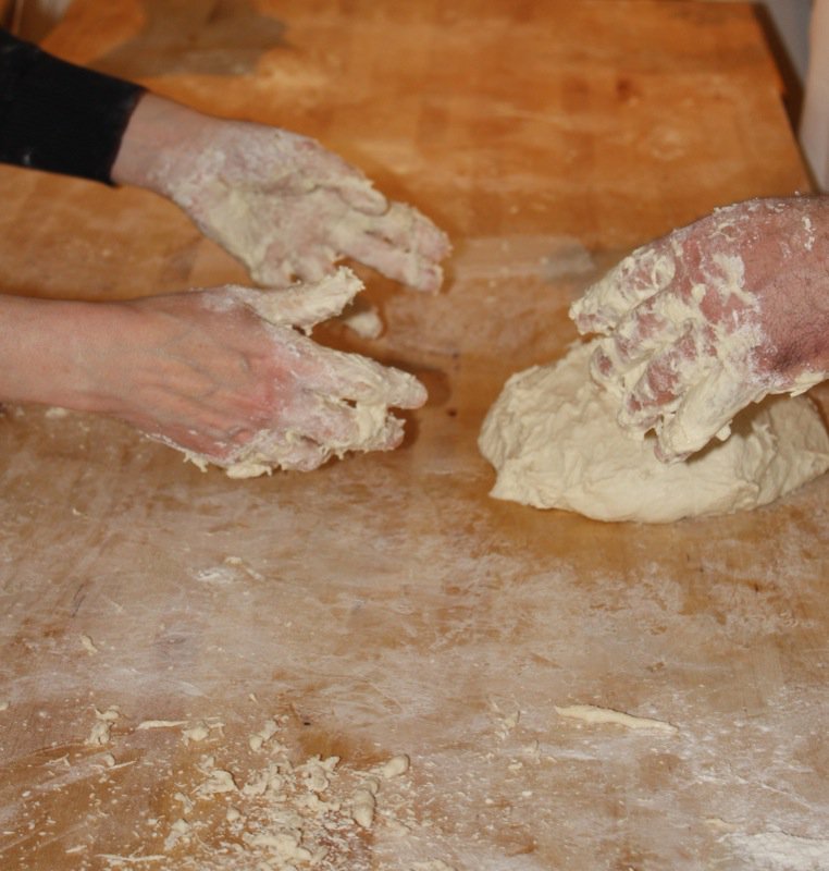 We all took turns and revelled in getting sticky and were learning that it was part of the process of making a beautiful dough.