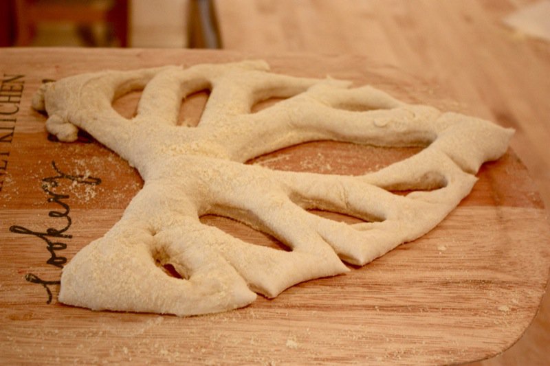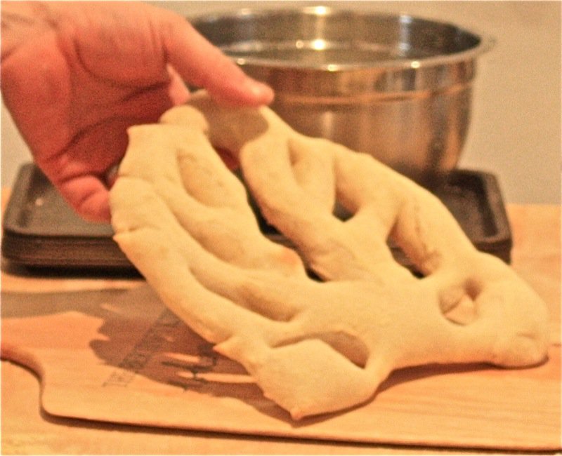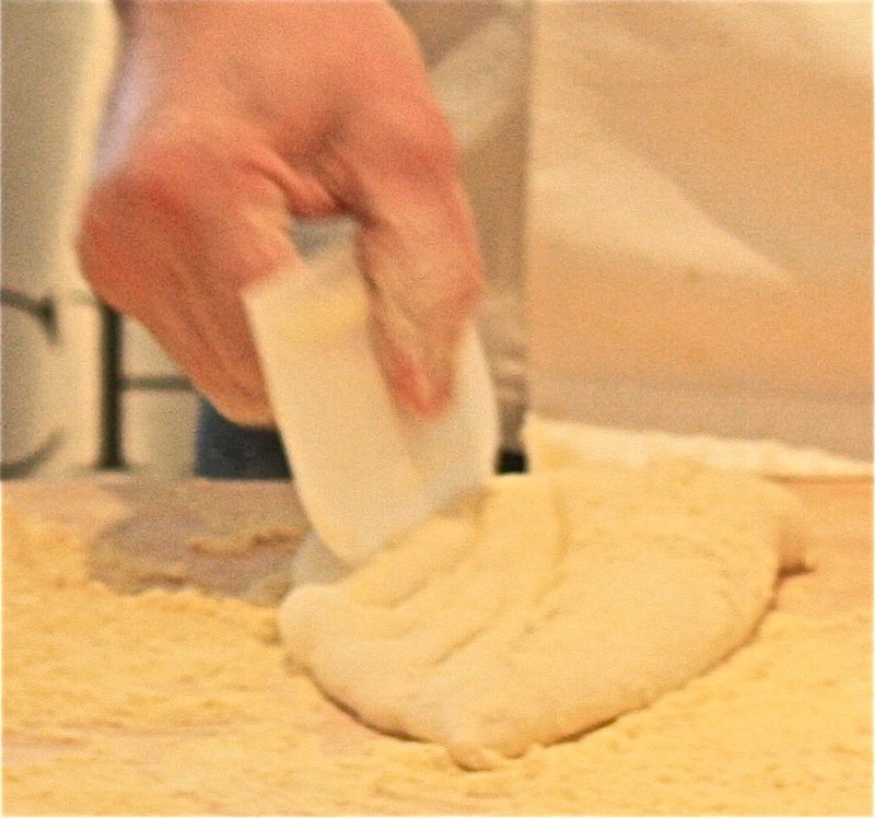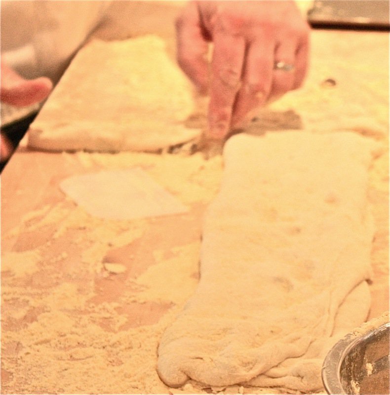 Pay attention to which side of the spatula you are using to cut into the dough to make the Fougasse. And, when I blinked my eye, one was already made and …