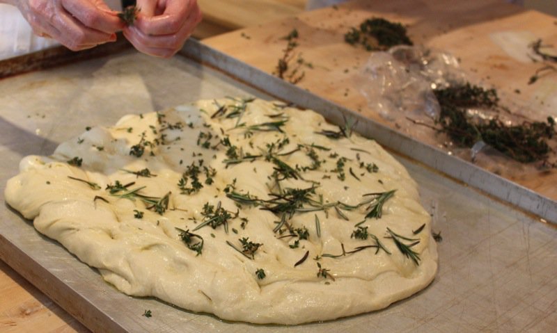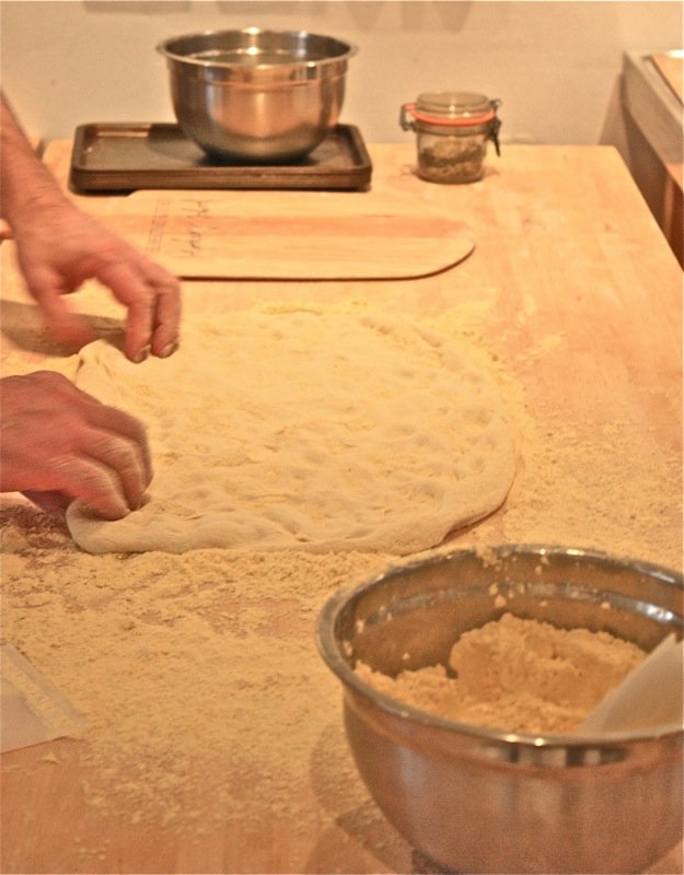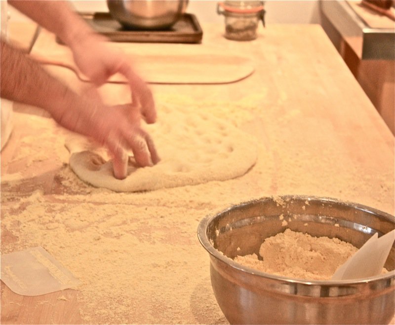 The same firm fingers-into-the-dough technique was used to increase the surface area and prepare the dough to receive its Focaccia topping.