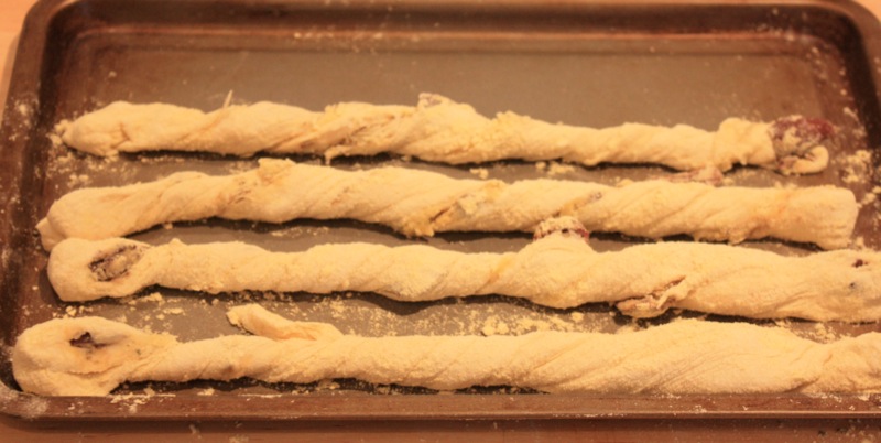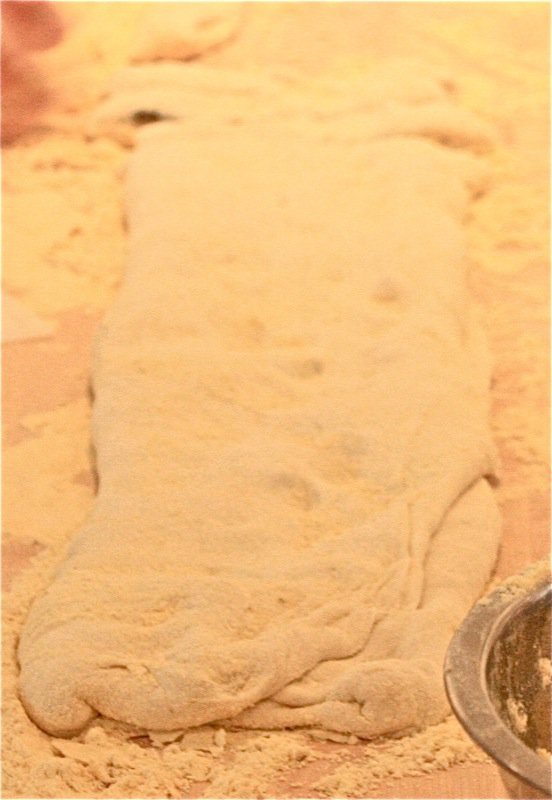 This time, right down the middle to make two logs of beautiful supple dough. One for this table, and one for another.