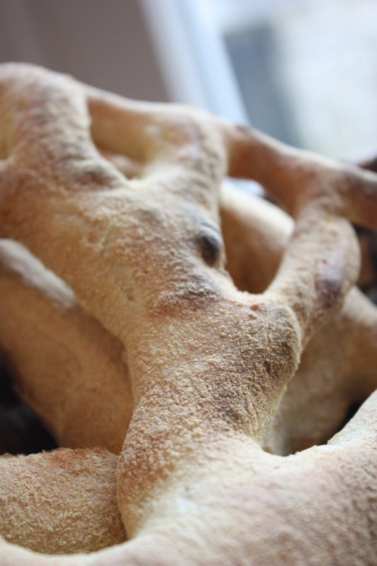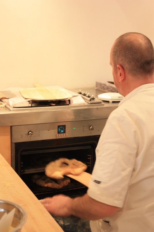 See how Richard is using the long slat to remove the Fougasse from the oven? Beautiful! And this is definitely bread that you have to chew.