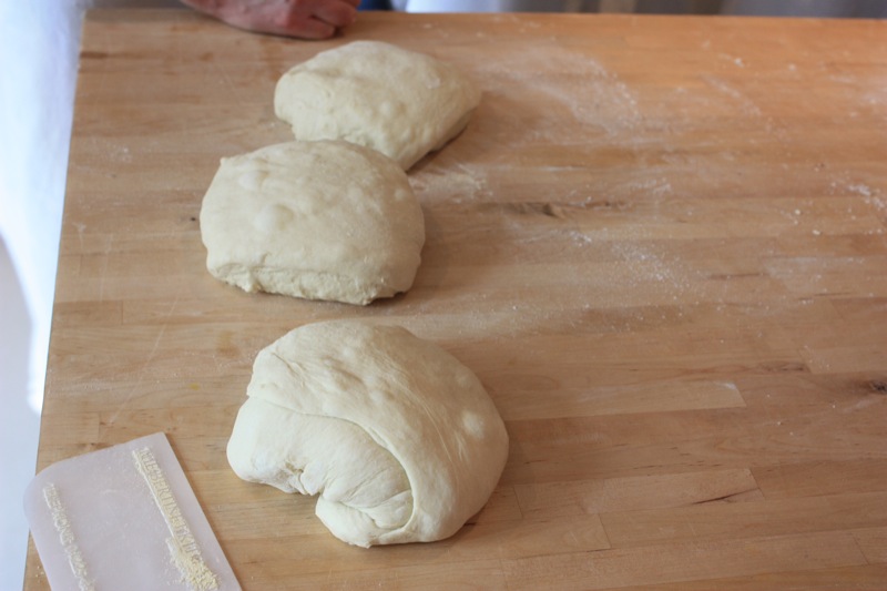 Weigh each portion of dough at 400g and place them in the order of which was weighed first as that will be the order that you return to first to prepare for the pan.