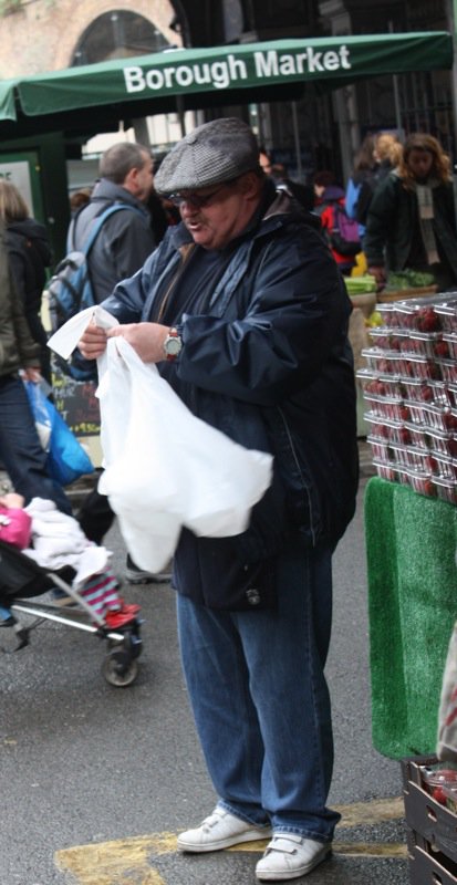 “Strawberries! Two quid a pound! Two quid a pound: fresh strawberries!” The lilt in his booming voice was charming, except that he continued on and on and on and on. I don’t know how he did it. By the end of the day it was, “Strawberries! One quid a pound! Only one quid a pound: fresh strawberries!”