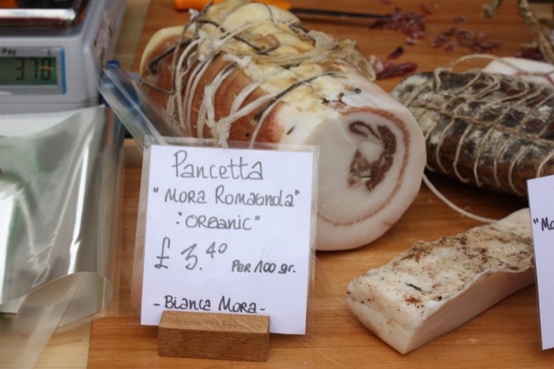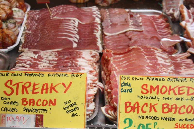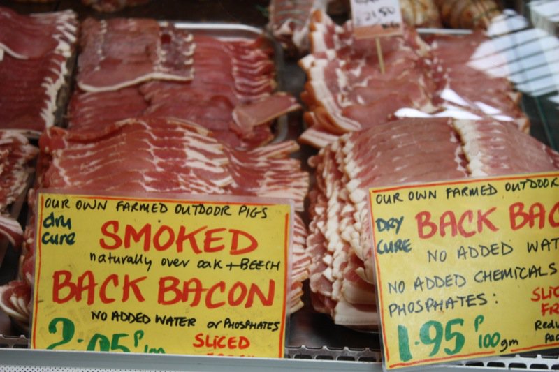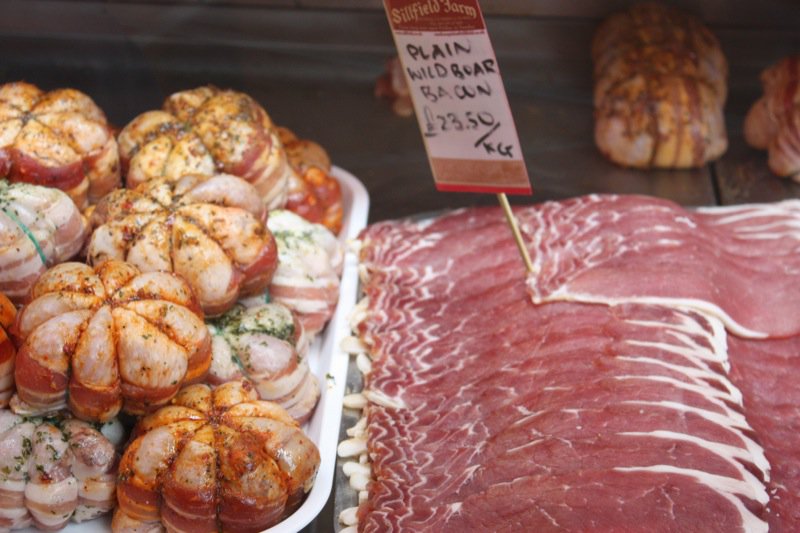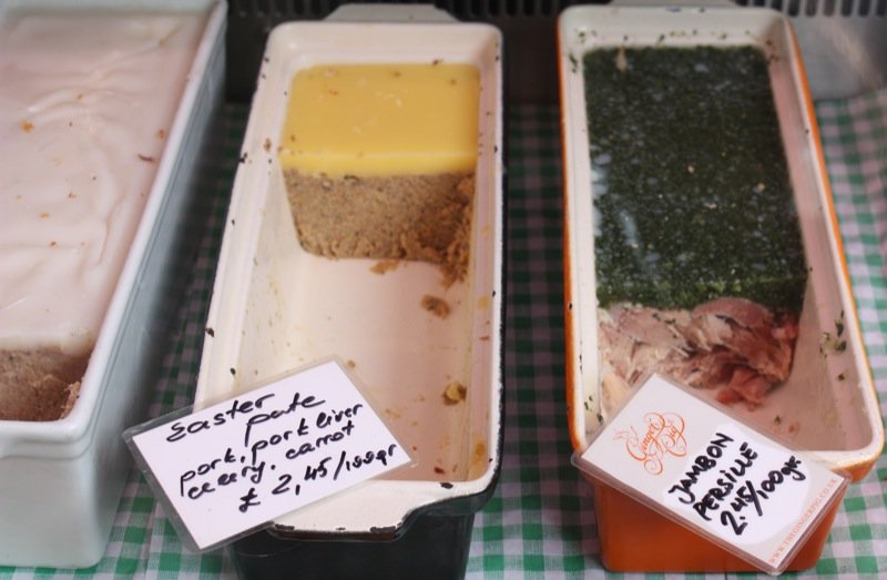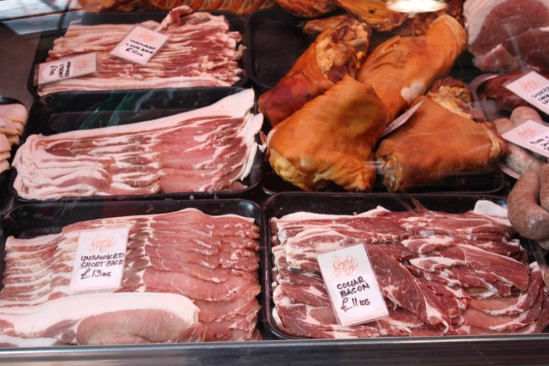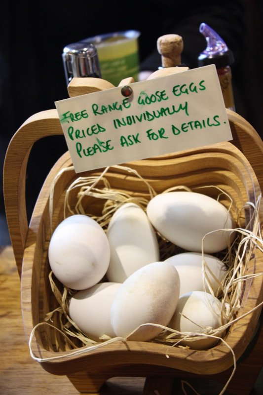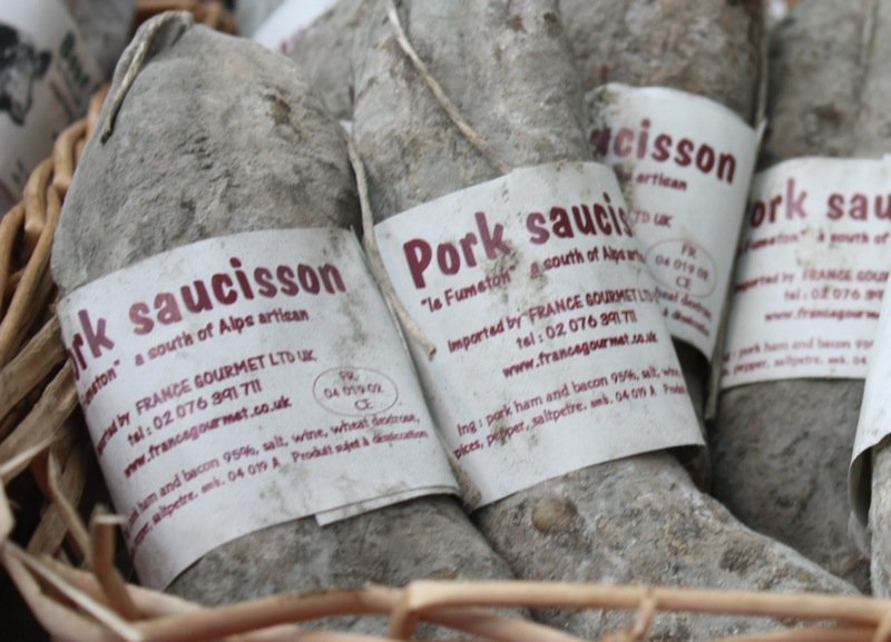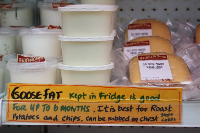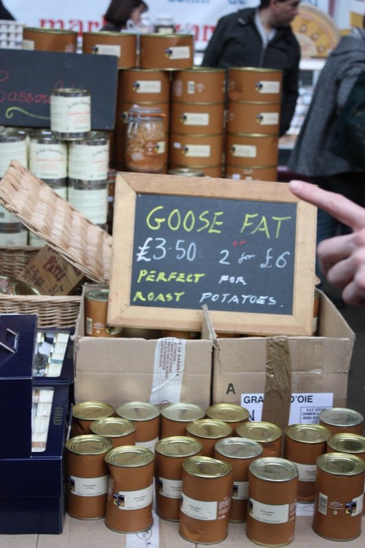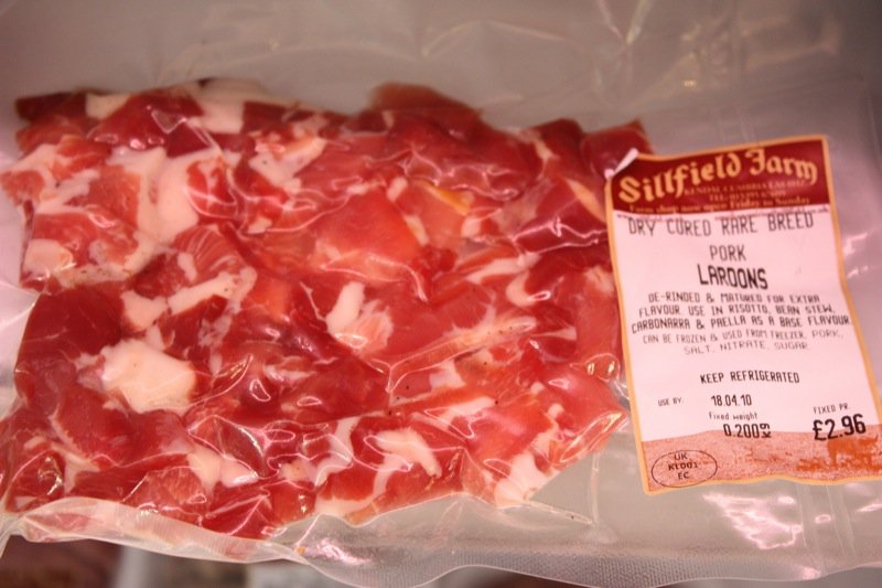 Dry cured rare breed pork lardons: what can I say? I wanted to buy it all. And, fresh goose fat, or at least, not canned.