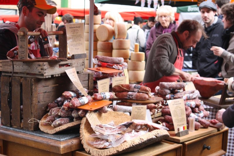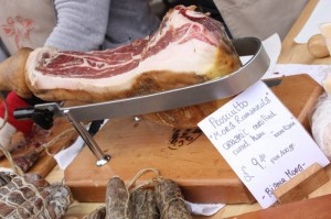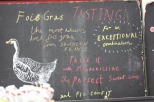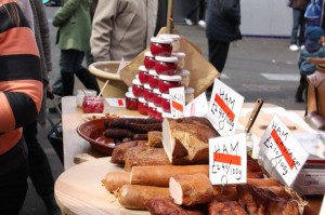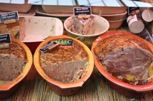 Pork shoulder and bacon with dry goat cheese, wine, and wheat sausage: manifique! Woops! Wrong country. And I looked everywhere for the Foie Gras Tasting. One had to buy it to taste it. But who cares? It is for sale at this market. Isn’t that wonderful?