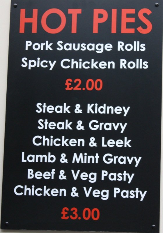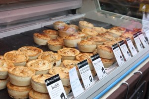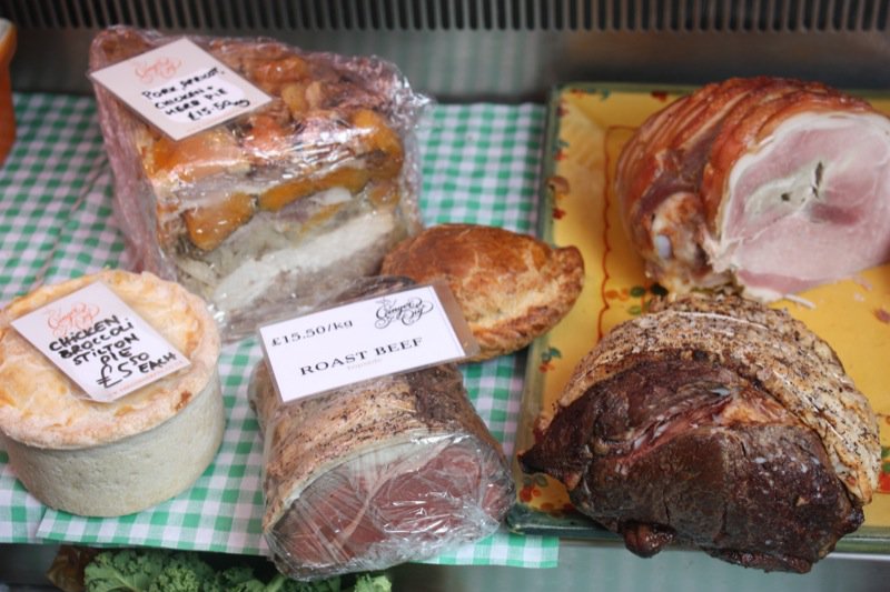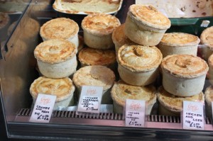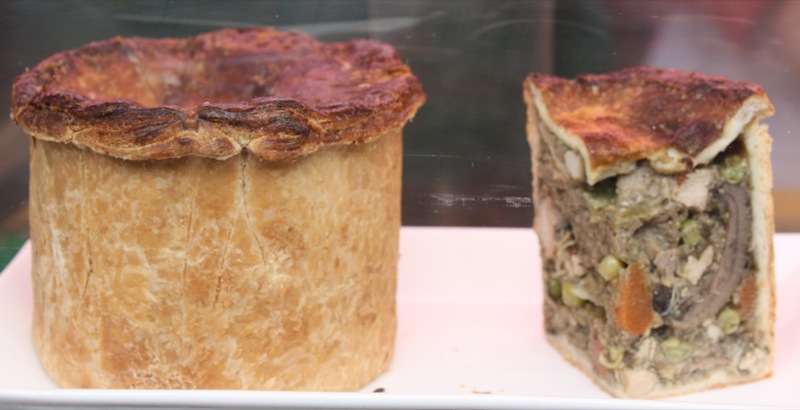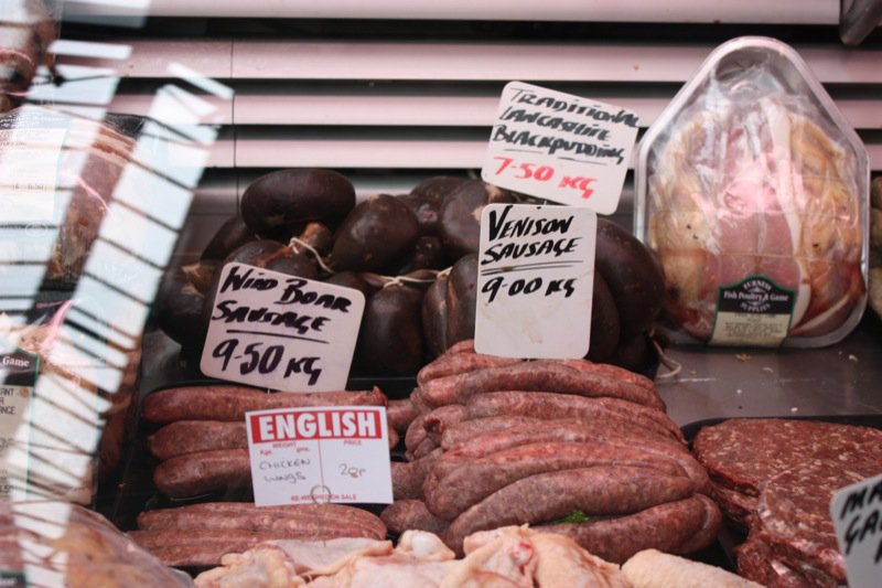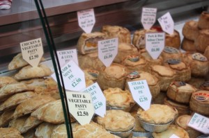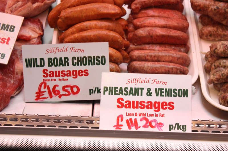 And cassoulet in a can? Amazing. Now here comes some British food. Hot pies! I have still not eaten one and this is our last day here. The assortment was astounding. Truly. People obviously eat these and love them. I need to try one. I have decided I am going to buy a Steak and Ale pie to try sometime today. I will keep looking. They just appear to be so dense and so heavy. And, still so varied and full of flavour. One thing that was clearly apparent was the abundance of wild meat and game everywhere through the city. In restaurant menus, in meat market windows, in the pies, and throughout the market. This is very different than at home.