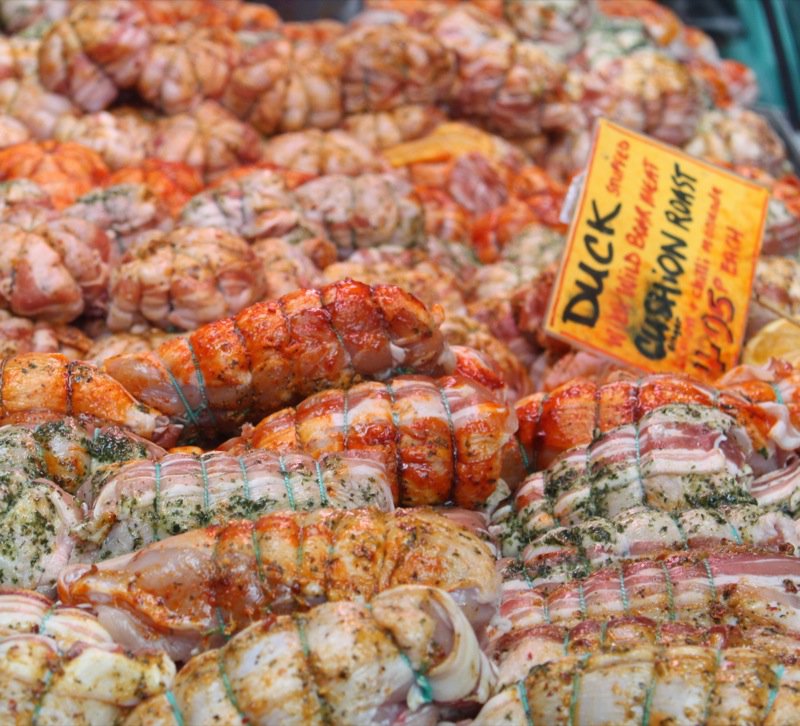 And then there was an entire window filled with seasoned and tied duck roasts of varying flavour profiles. I have never seen anything like it and was having aparty all by myself marveling at the choice and variety available at this market. This market is definitely brimming with meat. Brits are clearly meat eaters. Very different than the market in San Francisco at The Ferry Building that was brimming with greens and herbs and cheeses and breads and fruits.