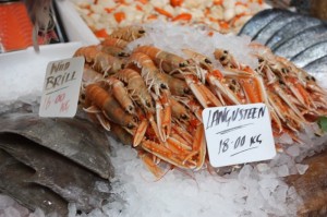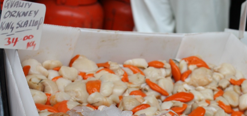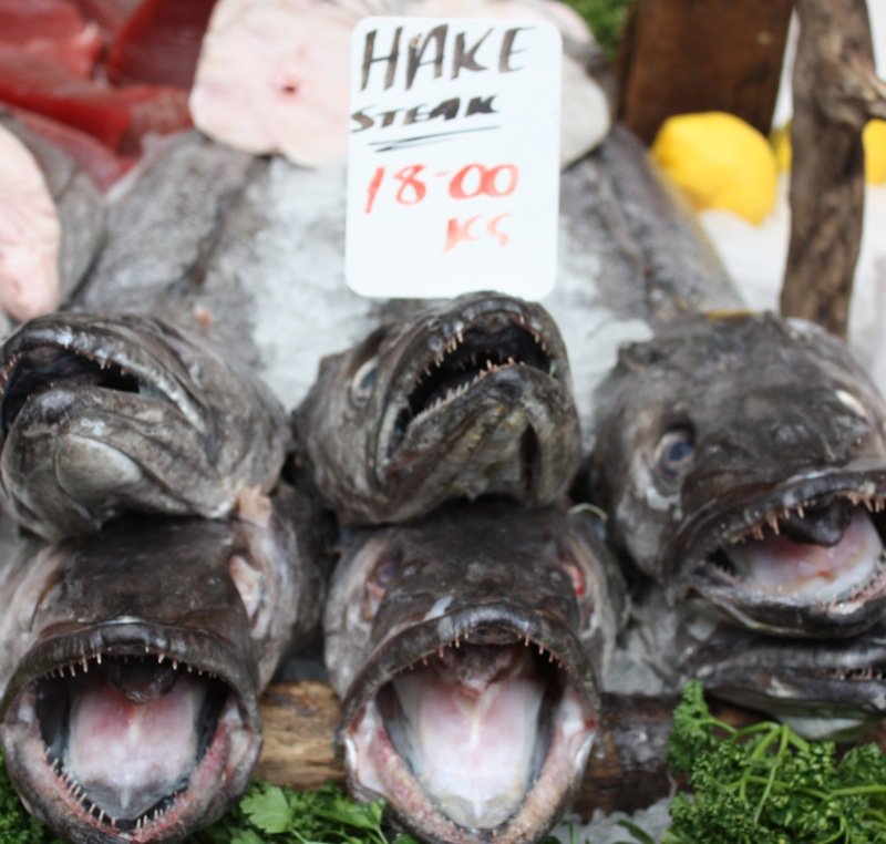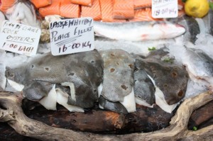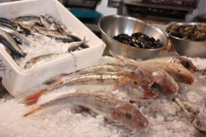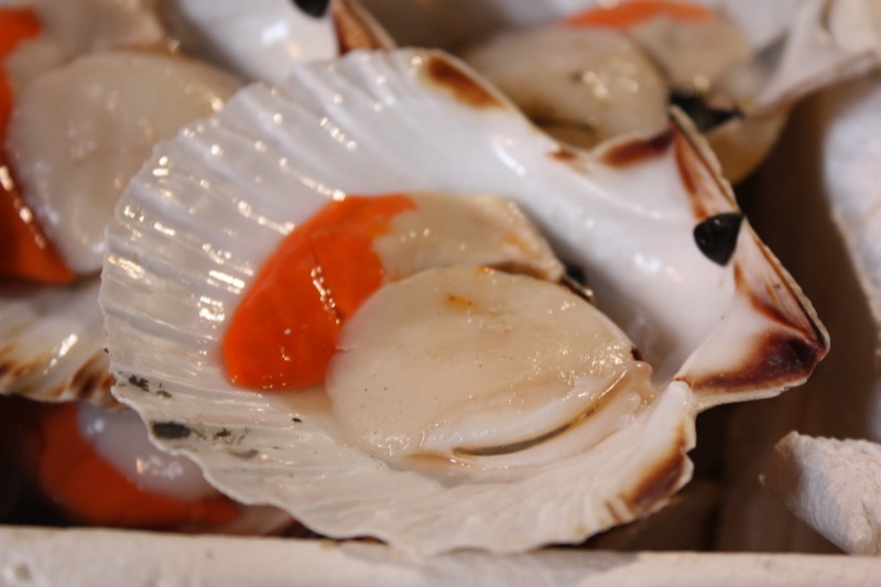 And I have never laid my eyes on the orange part of a scallop before. Or, if I have, I have never noticed it. I definitely need to find out what it is. ( And thanks to Simone, I now know it is coral, the roe part of the scallop. I am so blessed to be able to learn from my fellow food lovers!) The fish at this market was so fresh smelling and shiny and bright and gorgeous. I had never seen many of these kinds of fish. I love fish tastings so that I can compare a new fish with a fish I already know.