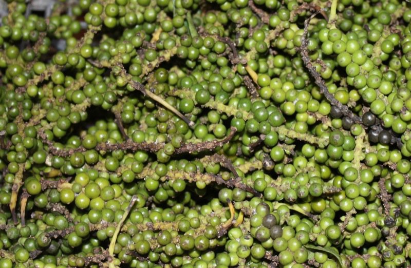 I bought the green peppercorns on the far right for a decoration for mom’s 80th birthday tea, and then forgot to use them (sigh). They have turned black, but are very tasty.