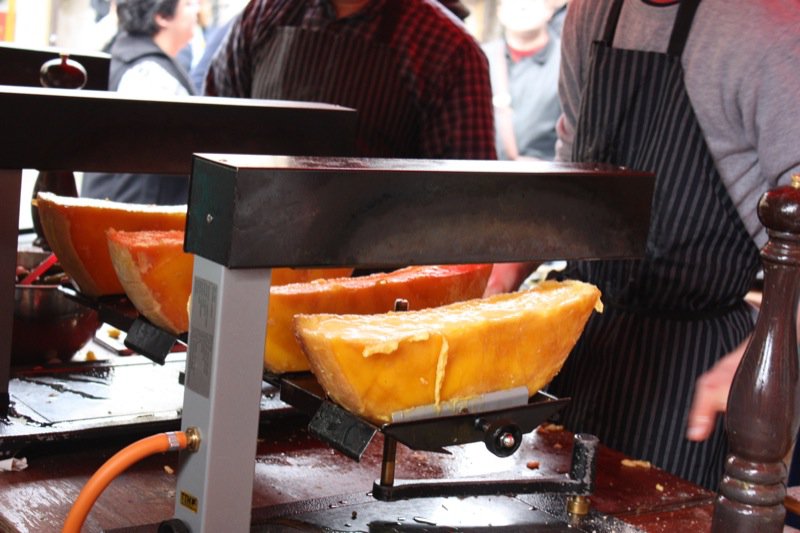 This is the cheese used for racellette. I was dying for a sample as Lauren (my duaghter) had been in Switzerland and had a racelette dinner and raved about it. A gal eying the cheese beside me read my mind and told me where I could find a booth to sample this cheese. I was not going to miss it! There is something smooth and unusually mellow looking and beautiful about this cheese.