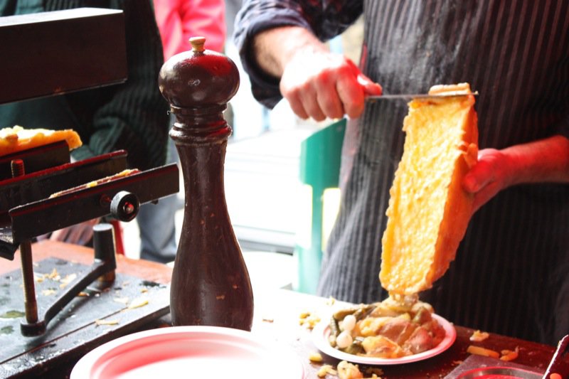 AH! Here is the Racellette! The name of the booth is Kappacasein (and The Brulee Blog was there a week before me). There was a crowd around this station so I peeked in to see the curiosity. Oh, my! The set up was simple, yet smart. When an order comes in, the cheese is maneuvered into position under the heat lamp and melted until bubbling and golden.