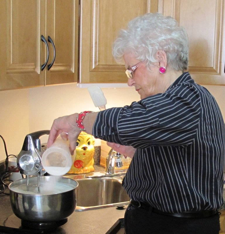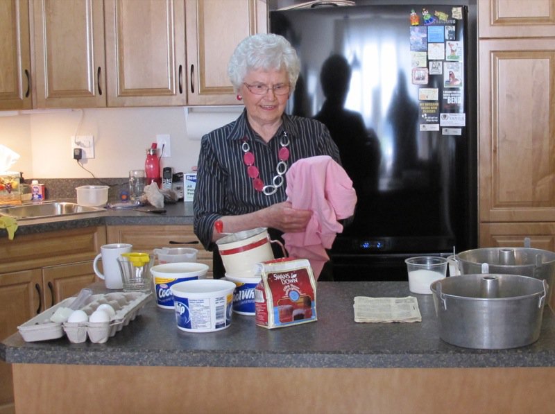 I asked mom to demonstrate how to make our family famous homemade angel food cake so I could make it for her 80th birthday.