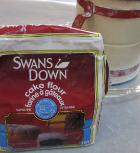And her flour sifted three times for the first cake and two times for the second cake. Swan’s Down Cake Flour has always been key.