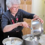 She was a little ten-year-old girl playing around her grandmother’s farmhouse when she recalled the old farmhouse was aflutter with activity. All of the women in the family were plumping the pillows, dusting the rooms, and beating the rugs to get ready for something. Then all worked in the kitchen whipping up fluffy egg whites after gathering the eggs from the hen house. Someone carefully cleaned the largest dishpan. She recalled a massive round and flat whisk that was bigger than she has ever seen since (about the size of a small frisbee) that each took turns whipping the egg whites into a white fluffy cloud with. A sparkling one-quart canning jar was placed in the middle of the dishpan and the airy batter gently swirled around it and baked in the wood-burning oven. It had to be watched very closely, and turned, as the fire was built on one side, and that side always cooked faster than the side away from the fire.
