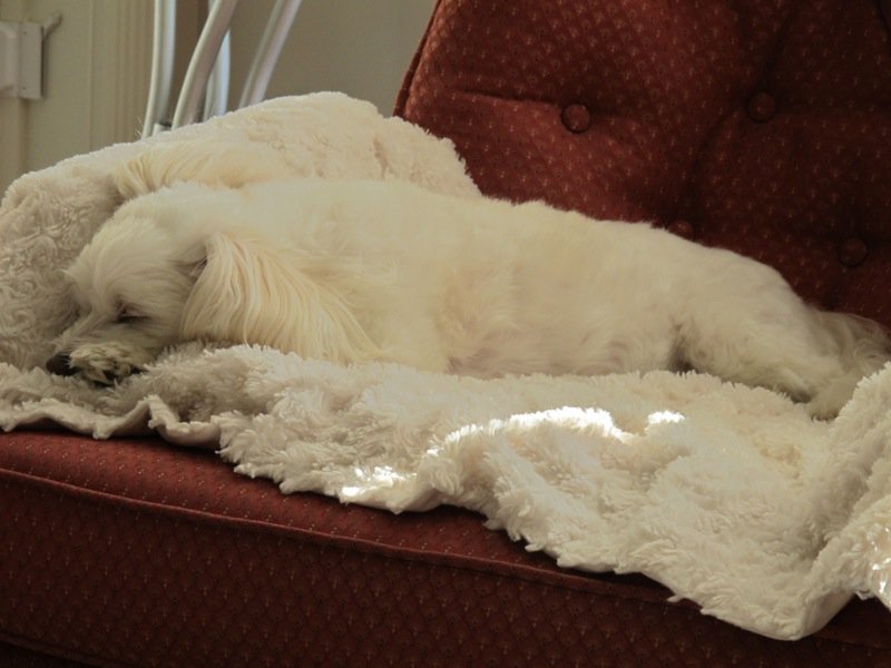 And no time for a hug for mom. I am greeted with the unconditional joy that my little baby sister, Penny, always smothers me with. She is our hairy human ball of family therapy. She brings us together when we are too tired to be brought anywhere. And today, she is doing her little dance at the door. I am an obedient guest and do what she has trained me to do. I give her a treat, and she kisses me all over before she quietly enjoys it, and then settles in her chair on her blanket.