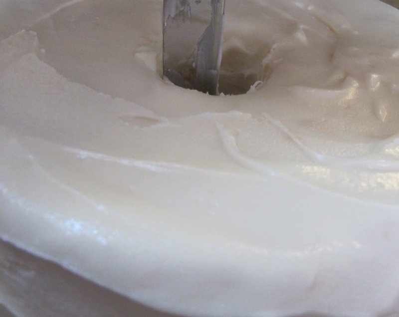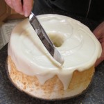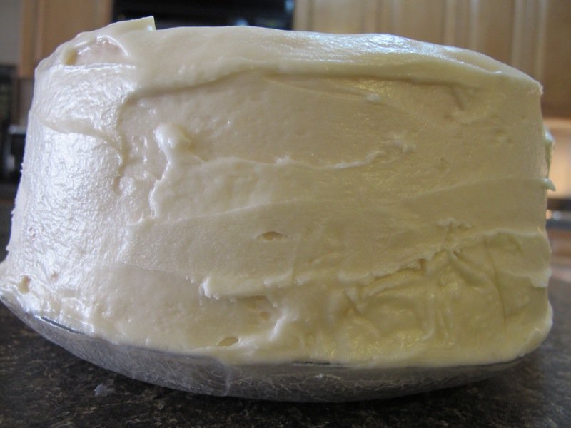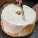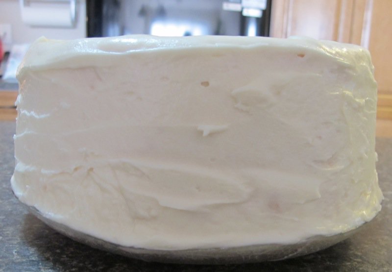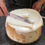 As they ice better frozen and taste better the day after they are made, I returned the following week to learn how she ices the cake.