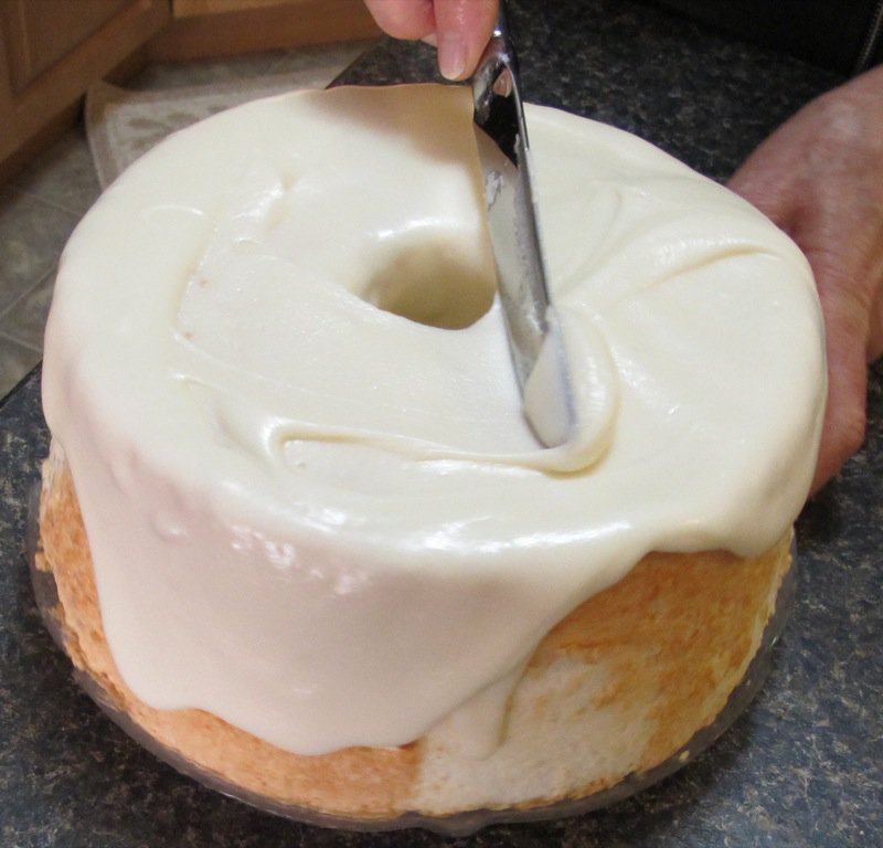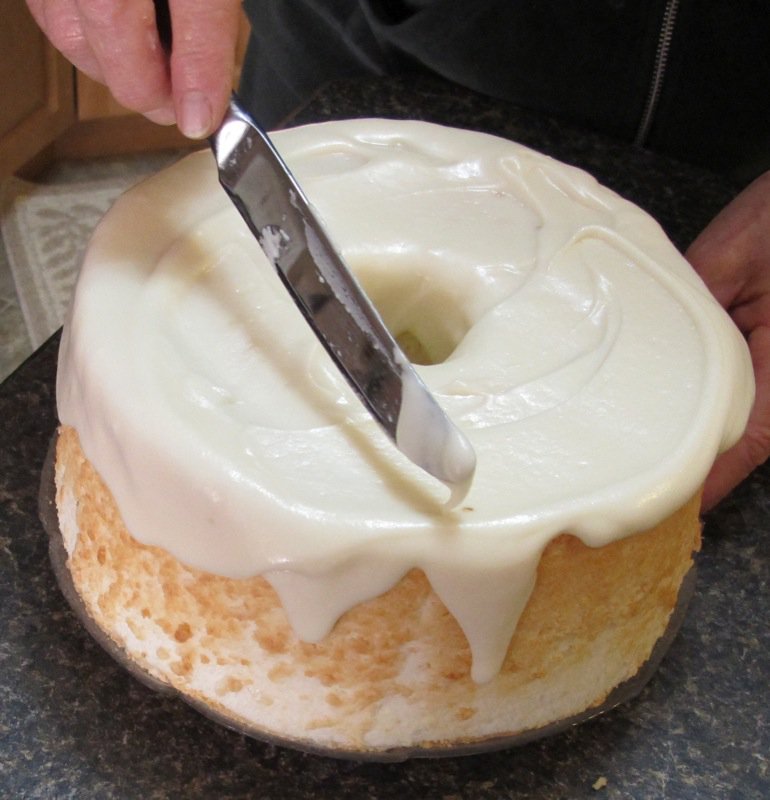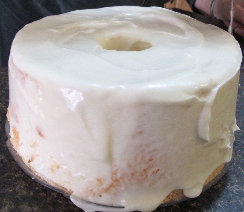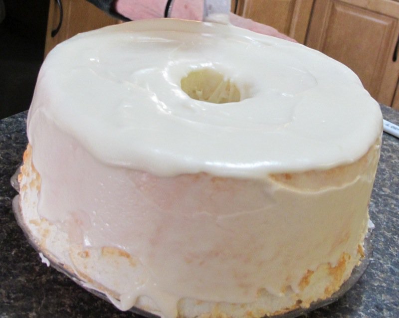 Homemade Angel Food Cake with Almond Scented Butter Icing