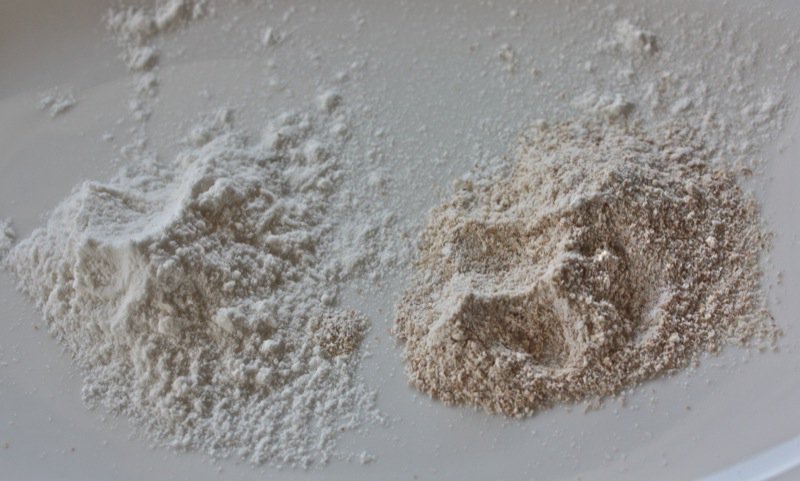 Look at the difference in colour between an all purpose white and the red fife flour. When you later see the difference in the bread colours, you may be as amazed as I was. The red fife flour made a very brown bread. This flour was milled to a fine powder and lovely to work with.