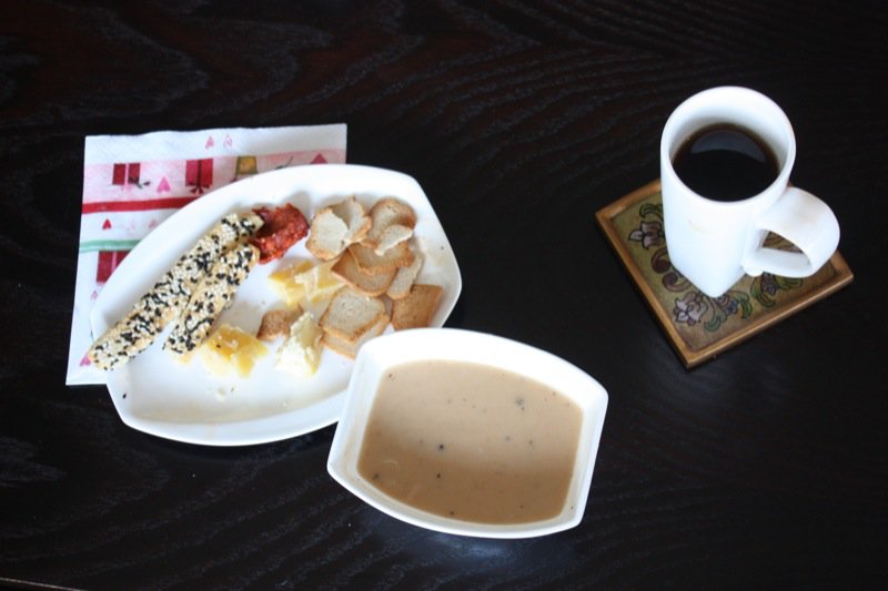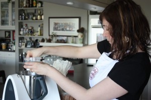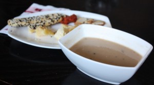 We were both ready for a little break once we finished our last loaf. There were nine in all. I guess that really isn’t much. We certainly weren’t working hard. It was an extremely enjoyable day. I had cheeses and goodies left from mom’s party the week prior, and whipped up a pear soup that morning as I found four lonely, almost over-ripe, pears in the fridge. A little onion in the Thermomix with a little olive oil, sautéfor 2 minutes, add the pears sliced in chunks and cover with chicken stock; cook for ten minutes. When we were ready, I reheated it for five more minutes, seasoned with salt and pepper, then puréed it. Yum! I had that wonderful Stilton left from Neal’s Yard Dairy, and with my Sesame Breadsticks, the pear soup was heaven. I am not sure Maria liked it as much as I did, but she is definitely easy to please, and a joy to work with! (Yes, you are, Maria!)