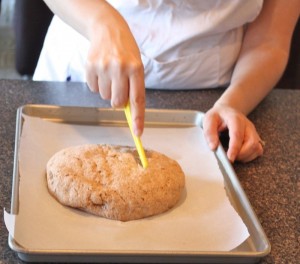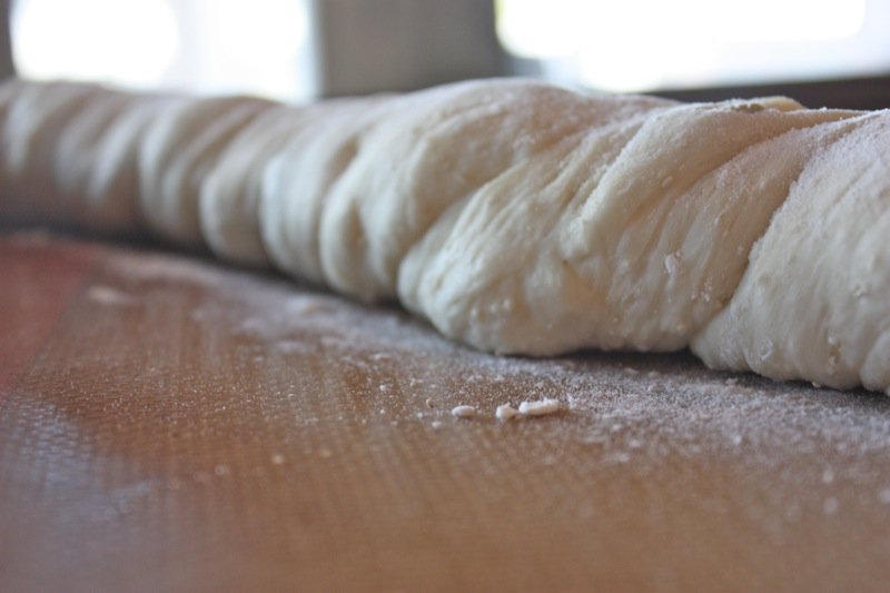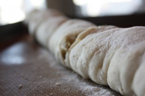 Our first batch of dough was ready. We took the red fife dough and shaped each into epi’s.
