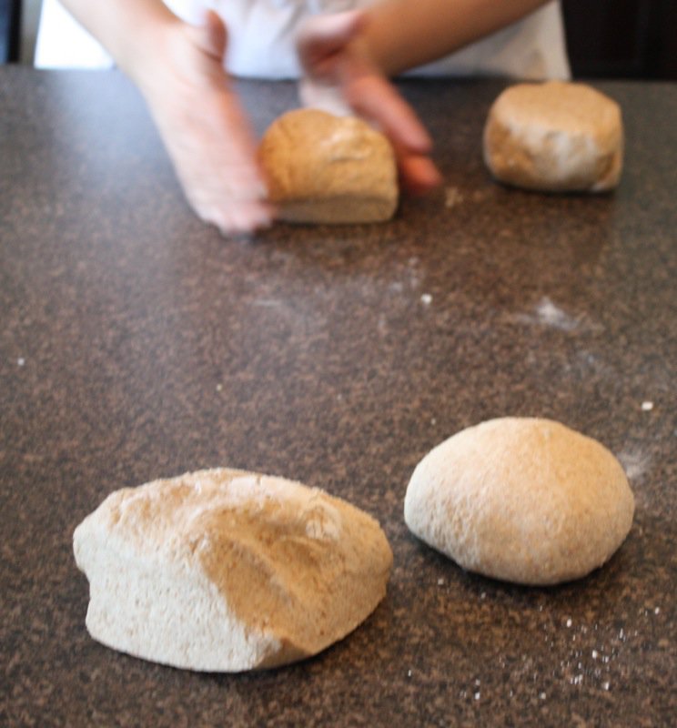 - Divide the dough into 2 portions (we divided it into 4) and mold each into a round ball; rest for 5 minutes
